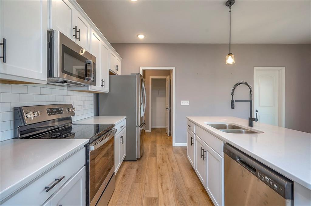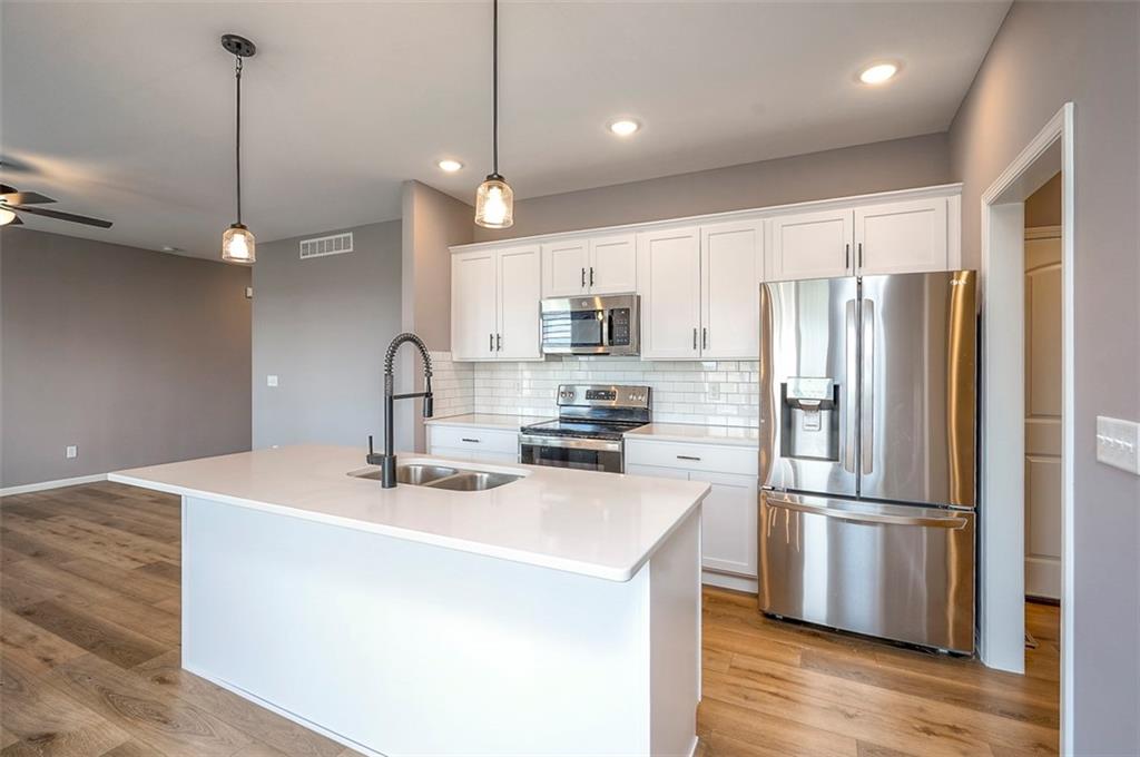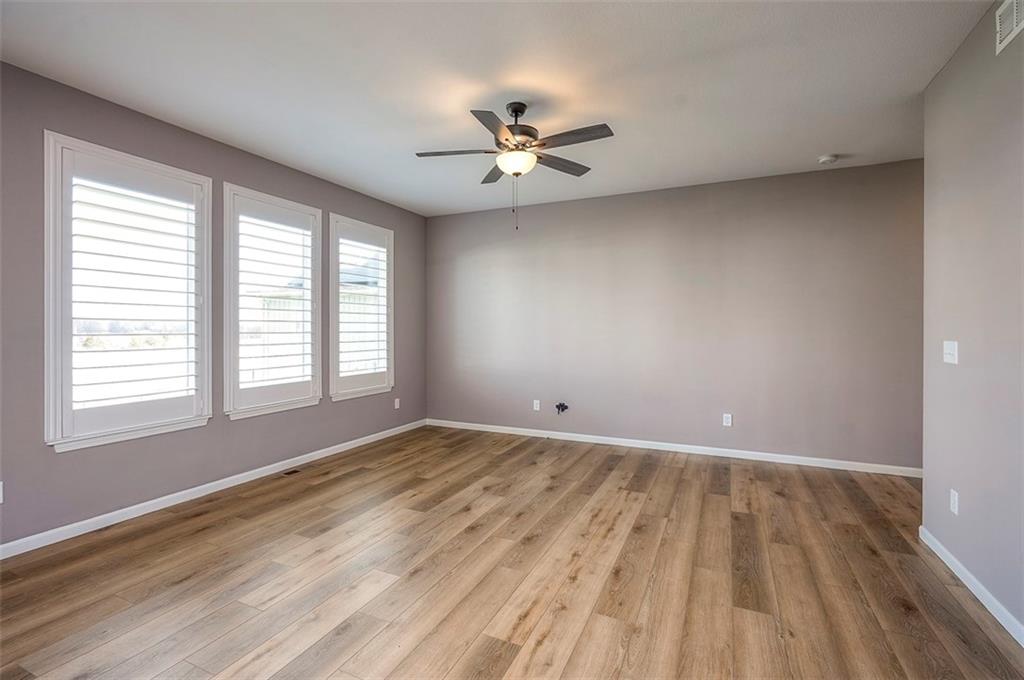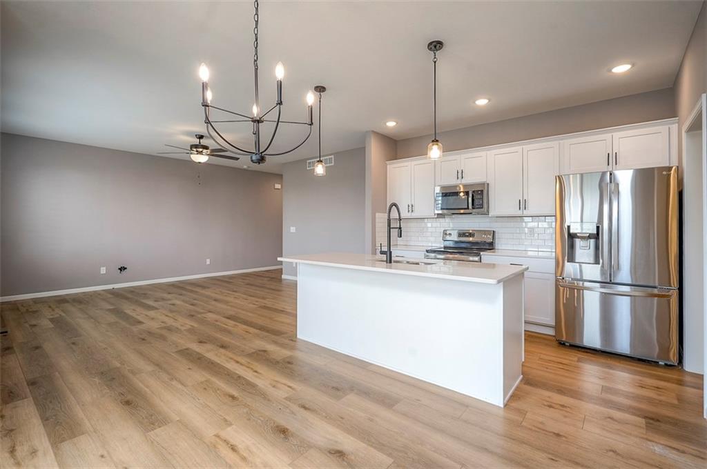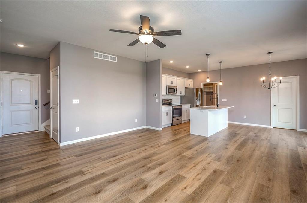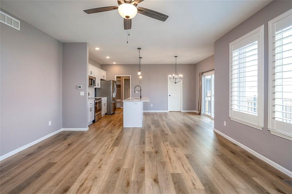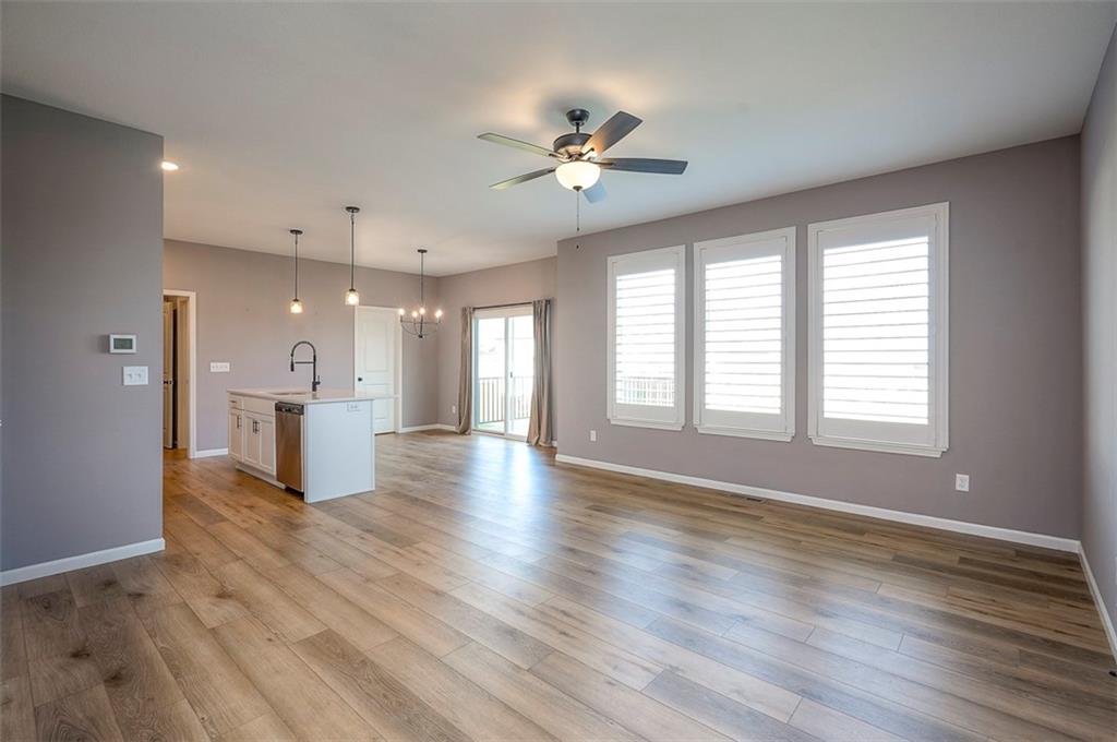 Greenwood / Lees Summit 3 bedroom 2 1/2 bath TWO STORY offers The open-concept main level and is designed for today’s lifestyle. A seamless flow between the living room, kitchen, and dining spaces makes it perfect for both everyday living and entertaining. Upstairs you’ll find three spacious bedrooms, a central laundry room, and a primary suite that feels like a retreat with spacious walk-in closet, private bath, and the space you need to unwind at the end of the day. The unfinished basement comes with two full sized egress window exits and is stubbed for a bathroom and ready for your personal use. A nice above ground North facing deck off the kitchen for morning coffee or evening refreshment opens to a green space ( Neighborhood retention lake ) behind the home that cannot be developed. Enjoy peaceful mornings, quiet evenings, and a sense of space vs a neighbors back yard. This two story is in a vibrant community with a pool, neighborhood events, and highly rated Lee’s Summit schools, this home offers both connection and convenience. Quick highway access to highway 7 and 50 highway makes commuting simple, and window treatments, towel hangers are already installed, saving you time and expense. This home offers style, function, and room to grow!