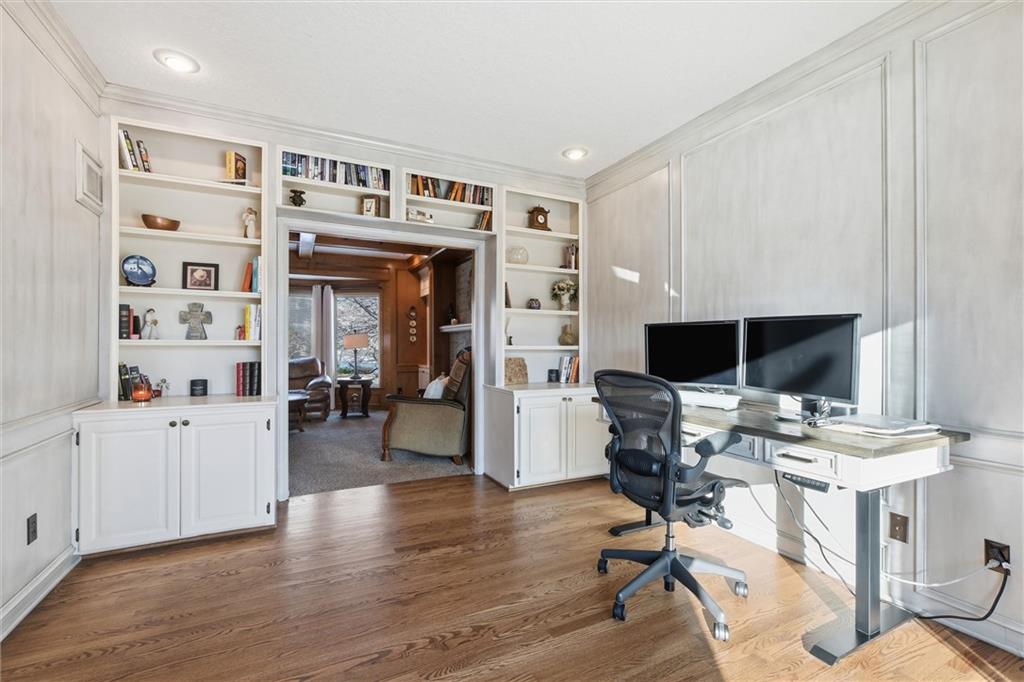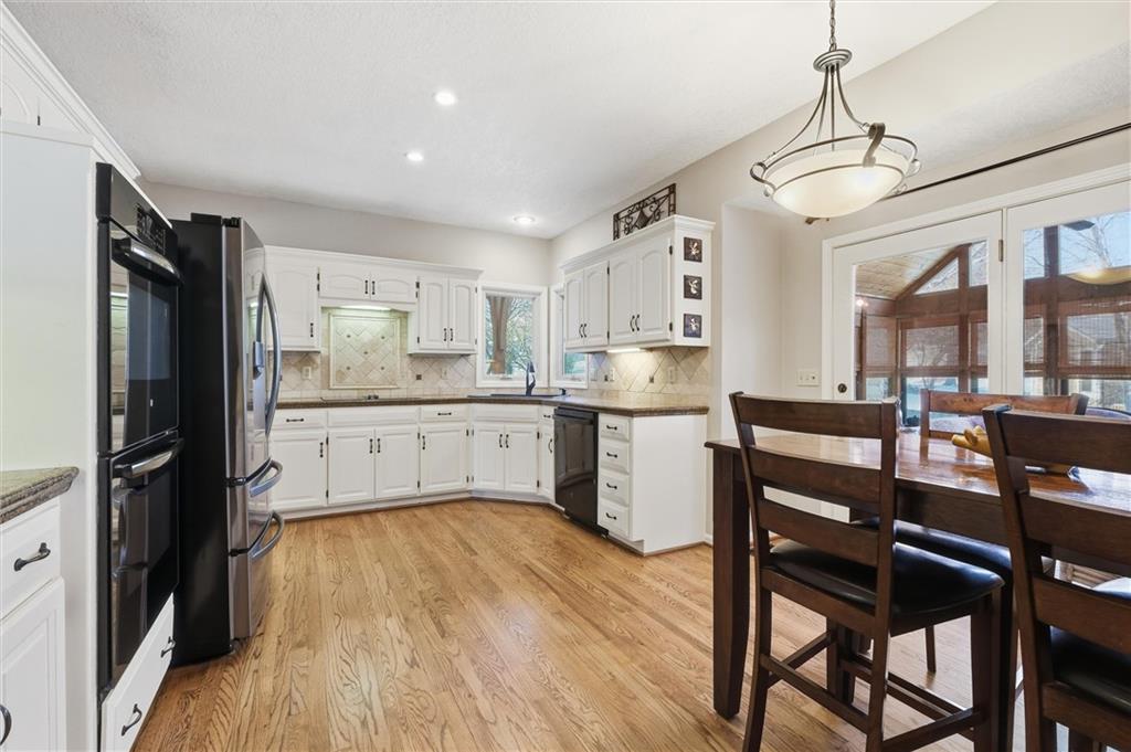Discover this beautifully updated 2-story home situated on a treed corner cul-de-sac lot, offering exceptional space and functionality. The main level welcomes you with hardwood floors, fresh paint, and generous living spaces. The family room offers a cozy fireplace and built-in bookshelves. There are also a dedicated first-floor office and formal dining room. The updated kitchen boasts granite countertops, a pantry, and hardwoods, opening to a bright sunroom. Upstairs, the spacious primary suite impresses with vaulted ceilings, two walk-in closets, a private sitting room and its own balcony. The luxurious, updated primary bath features tile and granite finishes, a free-standing tub, and a separate shower. Three additional bedrooms share an updated hall bath with stylish tile and granite. Offering both a 2-car front-entry garage and an additional 2-car tandem side-entry garage with basement access, this extra space is perfect for hobbyists, storage, or extra vehicles. The partially finished basement includes stained concrete floors and is currently used as a workout room. Outside, enjoy a fenced yard ideal for pets, play, or gardening. Major updates bring peace of mind, including a new roof (1 month old), new windows, fresh exterior paint, new gutters and newer HVAC system. This well-maintained home on a private cul-de-sac corner lot offers space, updates, and a flexible floor plan—move-in ready and waiting for its next owner!