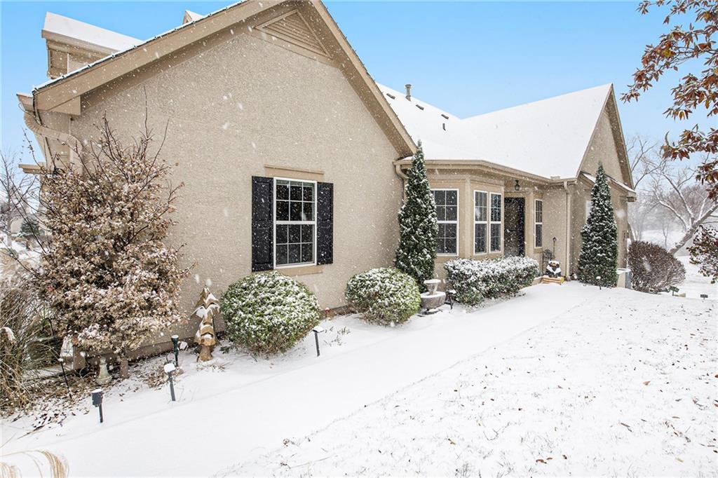 Coming Soon! Welcome to effortless living in this beautifully maintained reverse 1.5-story townhouse perfectly positioned along the fairways of Staley Farms Golf Course. From the moment you step inside, you’ll appreciate the open, airy feel—sunlit living and dining spaces, gleaming hardwood floors, and soaring vaulted ceilings that create a warm and inviting atmosphere. The main-level primary suite offers true one-level living, with convenient access to the kitchen, an expanded pantry, and laundry room. Step onto the covered deck to enjoy serene, year-round views of the golf course—your own relaxing retreat. The spacious walkout lower level is ideal for guests or multi-use living, featuring an en-suite bedroom, rec room, office, and storage—including a dedicated workshop area. Additional accessible attic storage—with built-in flooring and easy staircase access from the garage—adds even more storage capacity. This home has been immaculately cared for with thoughtful landscaping and is completely move-in ready. You'll be a part of a maintenance-provided community designed for convenience and leisure. Spend more time enjoying the exceptional Staley Farms amenities: zero-entry swimming pool, full gym, pickleball and tennis courts, sand volleyball, playground, indoor basketball court (also marked for pickleball), and scenic walking trails. HOA dues cover snow removal, lawn care, sprinklers, exterior building maintenance (including stucco, paint, and roof), and structure insurance—it's perfect for Snow Birds - just lock and leave! Located minutes from KCI and downtown, this home offers the perfect blend of comfort, lifestyle, and accessibility. Come see why this is the one you’ve been waiting for!