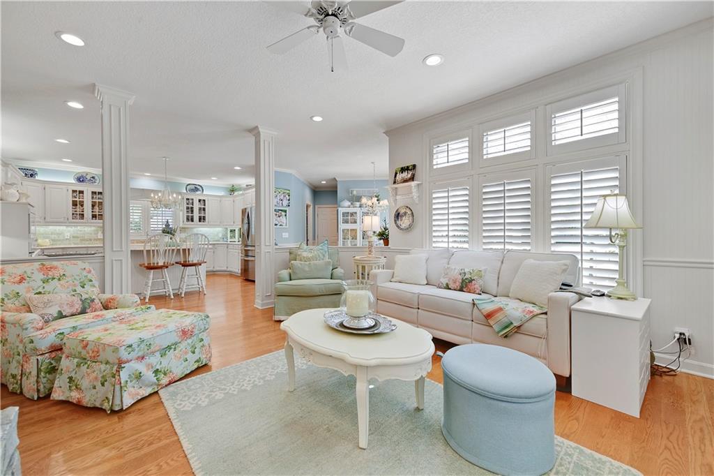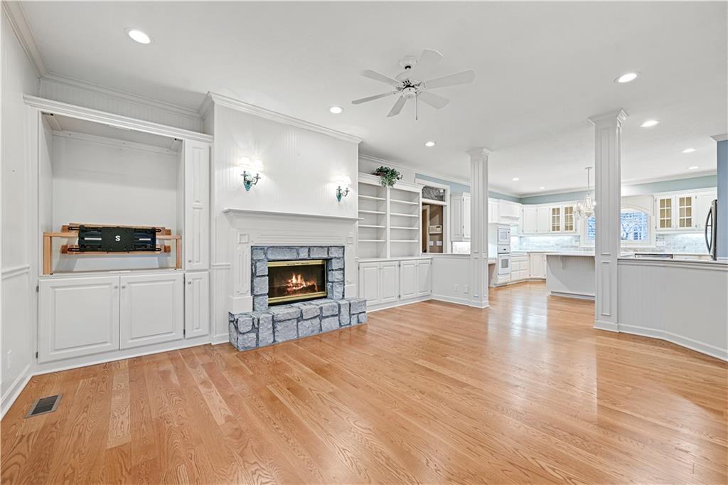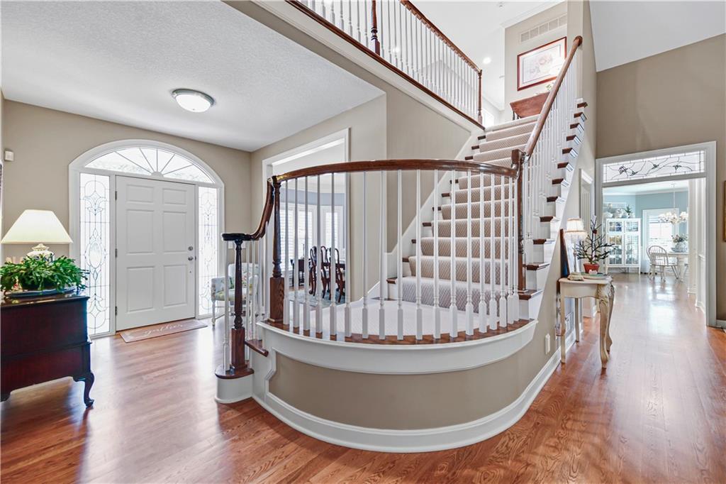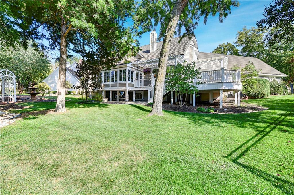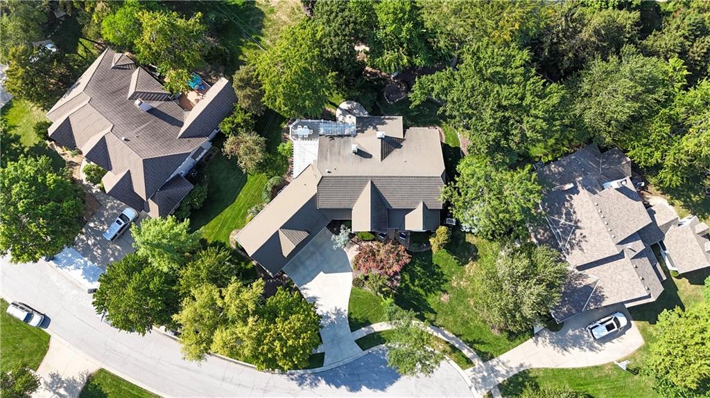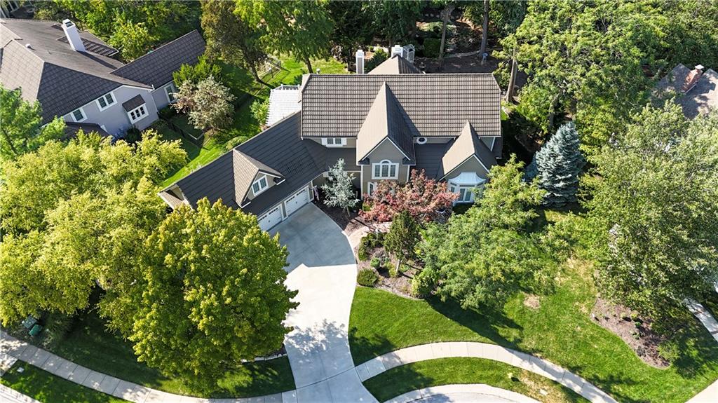 Nestled on a wooded cul-de-sac lot in the highly sought-after Cedar Creek community, this stunning 1.5-story retreat offers 5 bedrooms, 3 full baths, and 2 half baths—delivering the ultimate golf course lifestyle. The soaring 16-foot living room welcomes you with a grand stone fireplace, flanked by French doors that open to a cozy four-seasons room—an ideal spot for morning coffee while you watch deer and other wildlife wander by. The gourmet kitchen is a chef’s dream, featuring a spacious island, premium appliances, and a reverse osmosis water filtration system. Gather in the warm hearth room with its second fireplace and serene backyard views, or enjoy the charming breakfast nook that leads out to a maintenance-free deck. Head down the stairs to the lower patio and take a peaceful stroll around the manicured grounds—the golf course is just steps away. Back on the main floor, the primary suite offers a spa-like bath and a custom walk-in closet with convenient washer/dryer hookups. Upstairs, pristine new carpet guides you to three generously sized bedrooms, each with a walk-in closet and access to the versatile loft. Space, storage, and comfort abound. Complete your tour in the finished daylight lower level, designed for entertaining with a spacious rec room, full bar, workout area, and a private fifth bedroom. This home has been maintained with exceptional care—prepare to be impressed. Living in Cedar Creek means enjoying world-class amenities, including pools, a clubhouse, scenic trails, a 65-acre lake, and indoor courts for basketball, volleyball, and pickleball. Plus, you’ll have the opportunity to join one of the Midwest’s finest private golf clubs. Don’t miss this rare opportunity to own a remarkable home bordering one of Kansas City’s most picturesque golf courses.