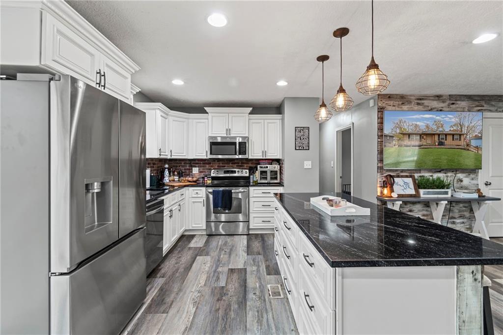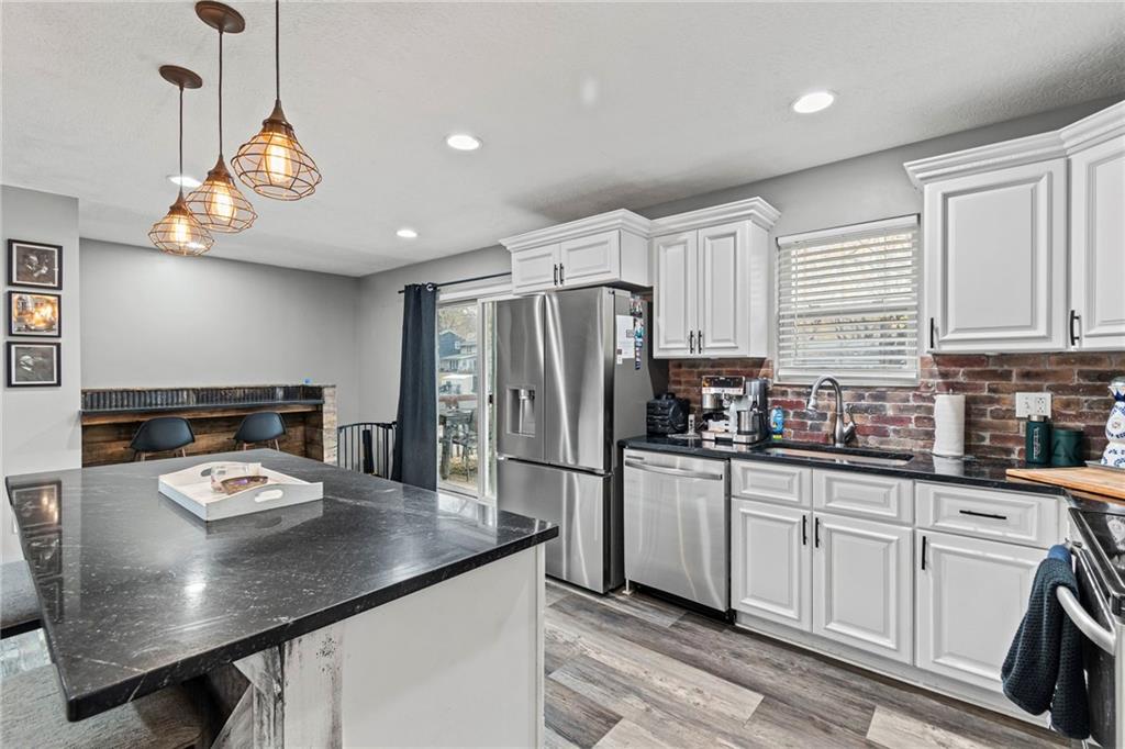 You will love the updates in this home! Very open floorplan with open great room & kitchen. The kitchen has been redone with granite, stainless appliances, beautiful island with custom rustic wood & metal detail. Luxury plank flooring throughout the main level. All 3 bedrooms are on the main level. The good sized family room and a full bath are in the finished basement. *Lots of extra parking space in the back of the house plus the attached 2 car garage! You walk out of the kitchen to a deck in the privacy fenced yard. There is also a deck/patio on the front of the house.