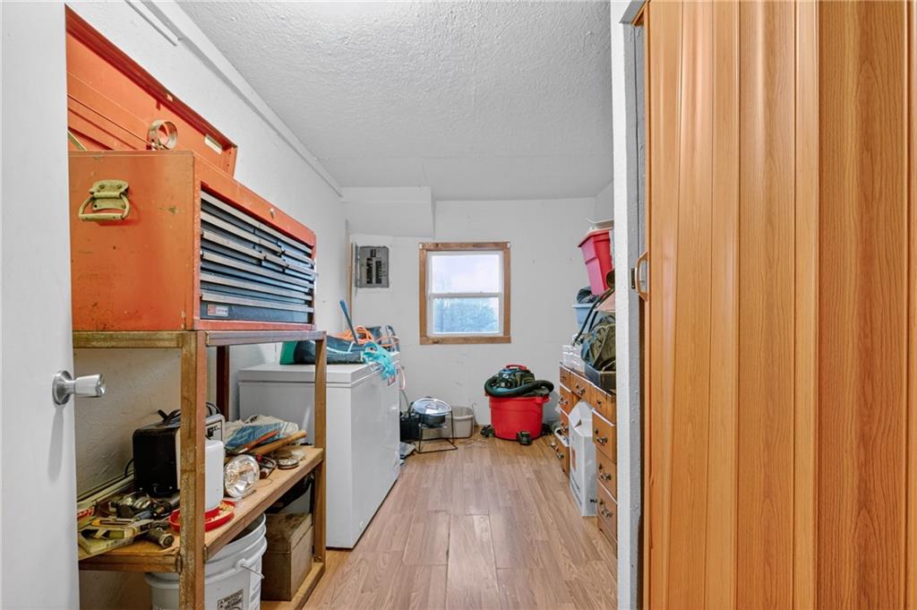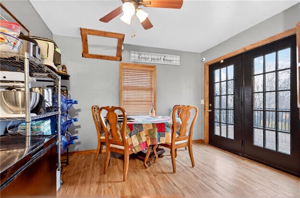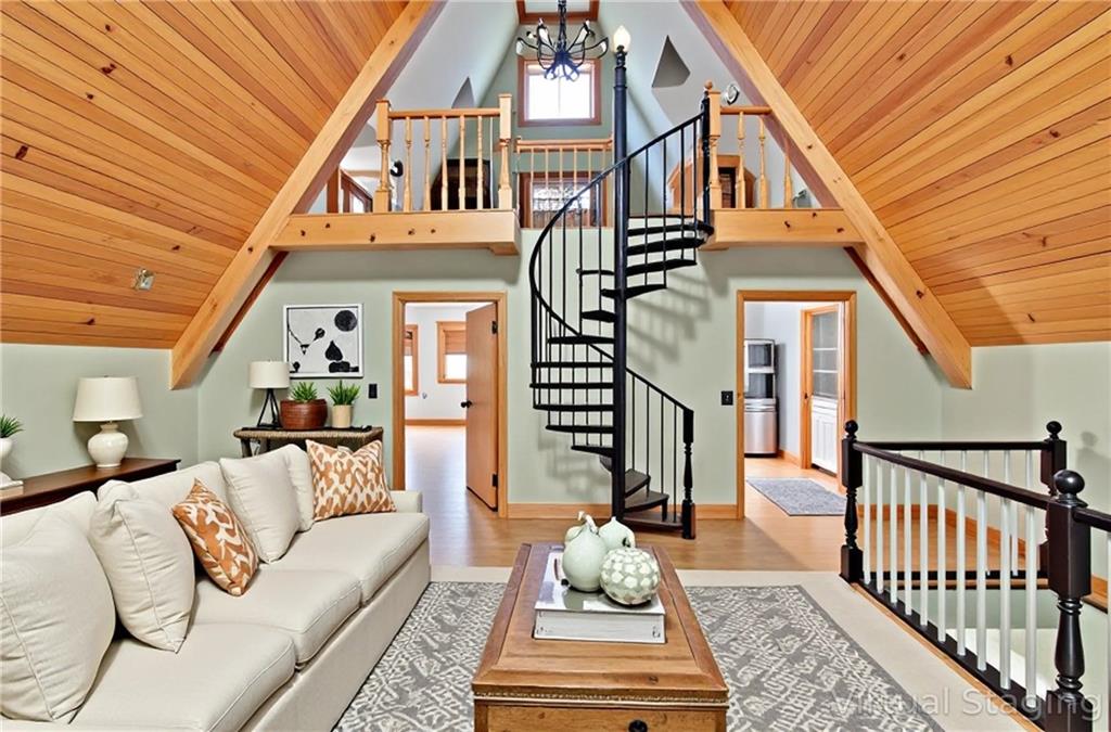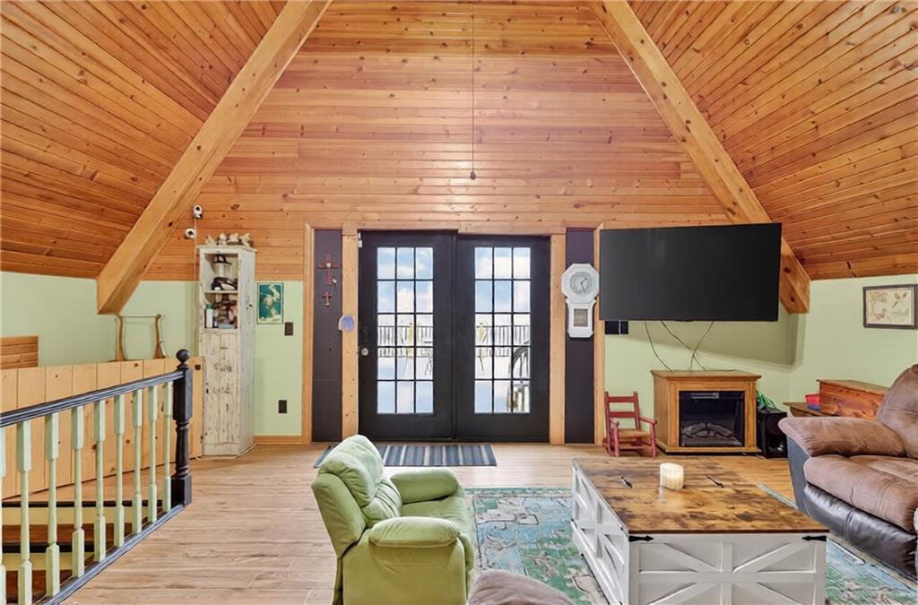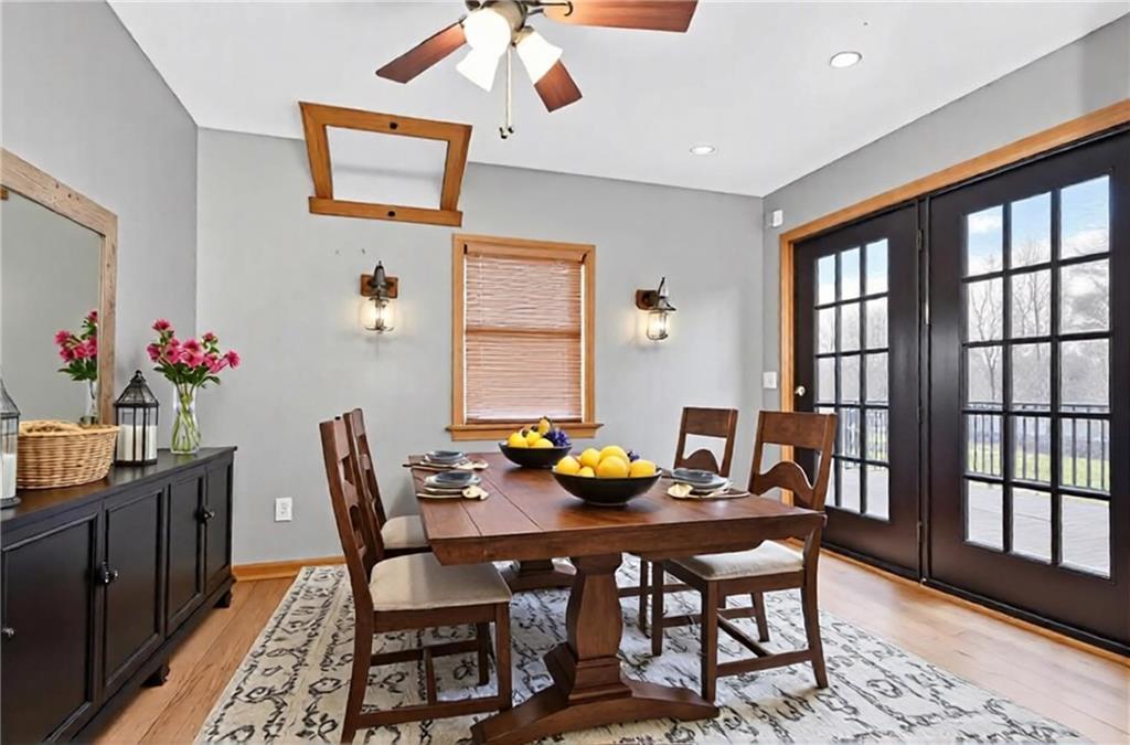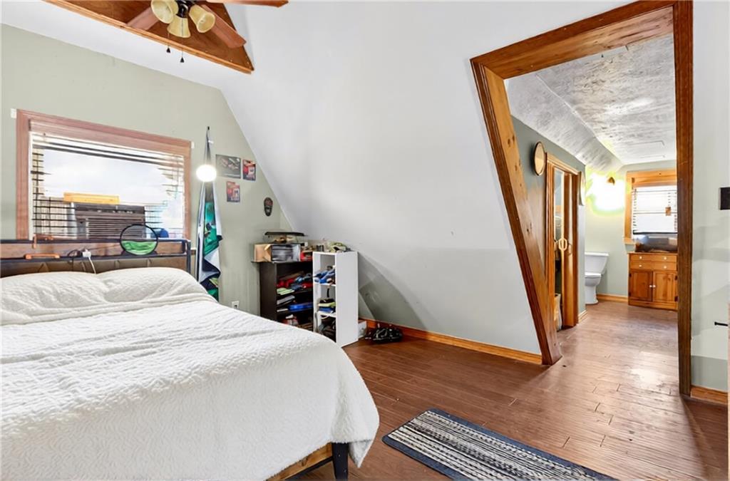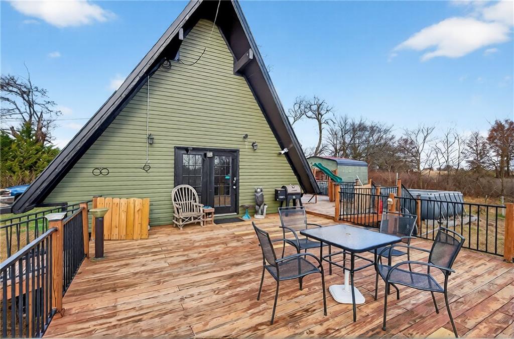 Experience A-frame charm combined with modern improvements across this 1.9-acre property that includes a full guest house and inviting outdoor amenities. A great setup for multi-generational living or extra space. Located in a convenient rural corridor between Nevada, Missouri and Fort Scott, Kansas. The primary A-frame style home, built in 1992, offers 1,484 sq. ft. with a warm and inviting loft layout. As you enter, you’re greeted by a striking vaulted wood ceiling and an open living space filled with natural light. The kitchen sits just off the living room and includes updated appliances, making daily living and entertaining a breeze. This home offers 2 bedrooms, 1 non-conforming bedroom, and 2.5 bathrooms. The main-level primary suite provides comfort and privacy, while the finished walkout basement adds versatility for additional living space, guests, or hobbies. Step outside and enjoy a large deck overlooking the above-ground pool, plus a charming firepit area complete with swinging benches — a perfect setting for quiet evenings or gathering with friends and family. The acreage features peach trees, pear trees, grape vines, and blackberry bushes, adding to the peaceful rural appeal.An added bonus is the 840 sq. ft. guest house, offering 2 bedrooms, 1 non-conforming bedroom, and 1 bathroom — ideal for guests, extended family, or potential rental income. Major improvements in recent years include: Central heat & air, Newer metal roofs on both homes and all outbuildings, Newer siding on both homes,Newer windows and doors, Newer flooring, Newer well water filtration system. And if it sweetens the deal…the owners are even willing to leave the chickens — gobble, gobble! Important Note: The sellers lead a very busy lifestyle. To help buyers envision the layout and potential, some rooms have been virtually staged. The virtual staging is simply provided for convenience and visualization.
