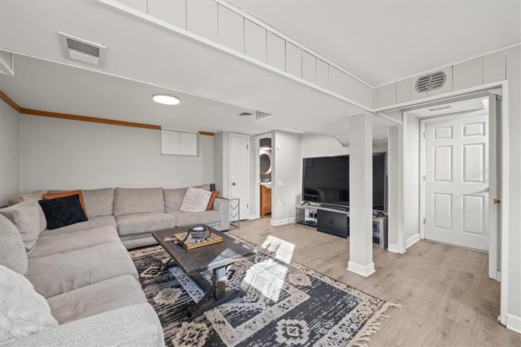 Exciting updates and truly ready for you to move right in! This home shines with a stunning, updated kitchen featuring new white soft-close cabinets, concrete countertops, a stylish tile backsplash, and tile floor, plus a full suite of newer appliances including a gas stove, microwave, dishwasher, and a new sink/faucet, complemented by a convenient sliding back door. Elegance abounds on the main floor where newly refinished wood floors gleam throughout the living areas and all three bedrooms. The main bathroom is also updated, showcasing a quartz countertop, refinished tub, and new shower backsplash. Downstairs, the basement offers even more space with a versatile rec room, a convenient half bath, and newer LVP flooring. Enjoy your private outdoor oasis with a large deck and a fully fenced backyard. Peace of mind is provided by durable vinyl windows and newer mechanicals (Furnace installed in 2022, A/C in 2015). Don't miss this move-in ready gem—schedule your showing today!