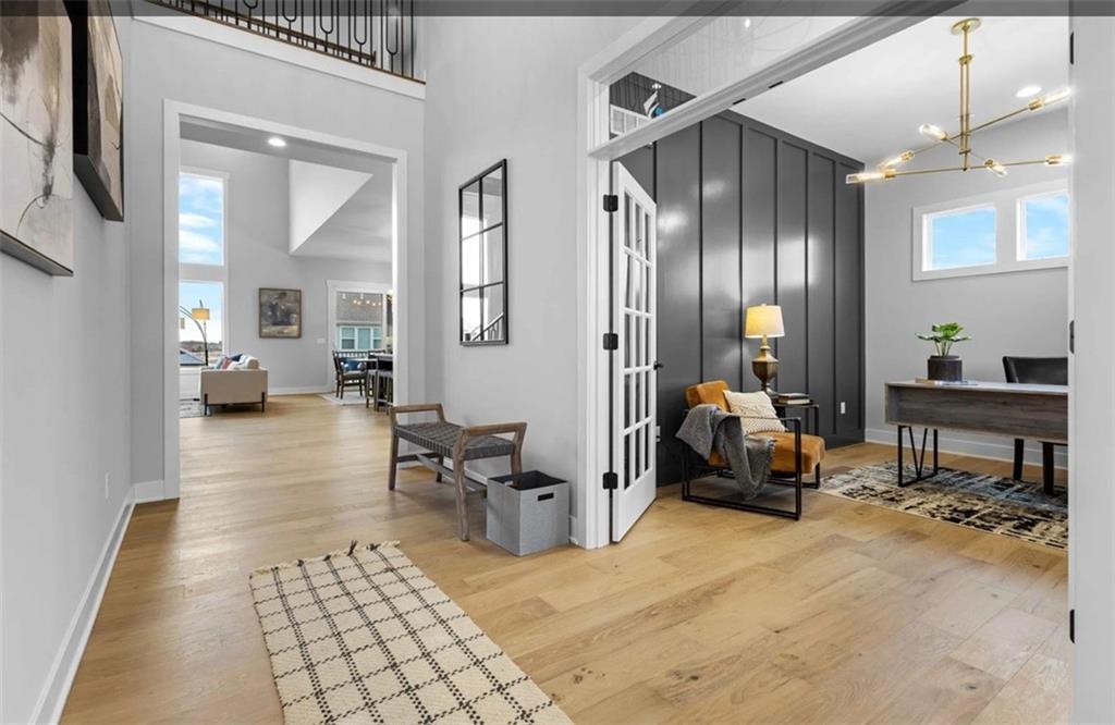 The Opus II by Inspired Homes sits beautifully on lot 73 in the highly desired Southern Meadows community. This exceptionally spacious home offers an impressive amount of square footage and is positioned on an oversized lot, giving you room to live, entertain, and grow. The 5-bedroom layout includes a convenient main-floor guest suite, perfect for visitors. A dedicated front office greets you upon entry, followed by an airy 2-story foyer filled with natural light. The soaring great room showcases an elegant fireplace design and a stunning wall of windows that capture views across the rear of the home. The designer kitchen is a true highlight, featuring quartz countertops, a massive island, abundant custom cabinetry, and a large walk-in pantry with prep sink. Upstairs, you’ll find four generous bedrooms, each offering excellent space, thoughtful furniture placement, and top-tier closets. The second-floor overlook provides fantastic views down into the dramatic great room. High-end finishes shine throughout the home. The expansive unfinished basement is ready for your future plans. Home is currently at trim stage. Estimated completion: March/April 2026.