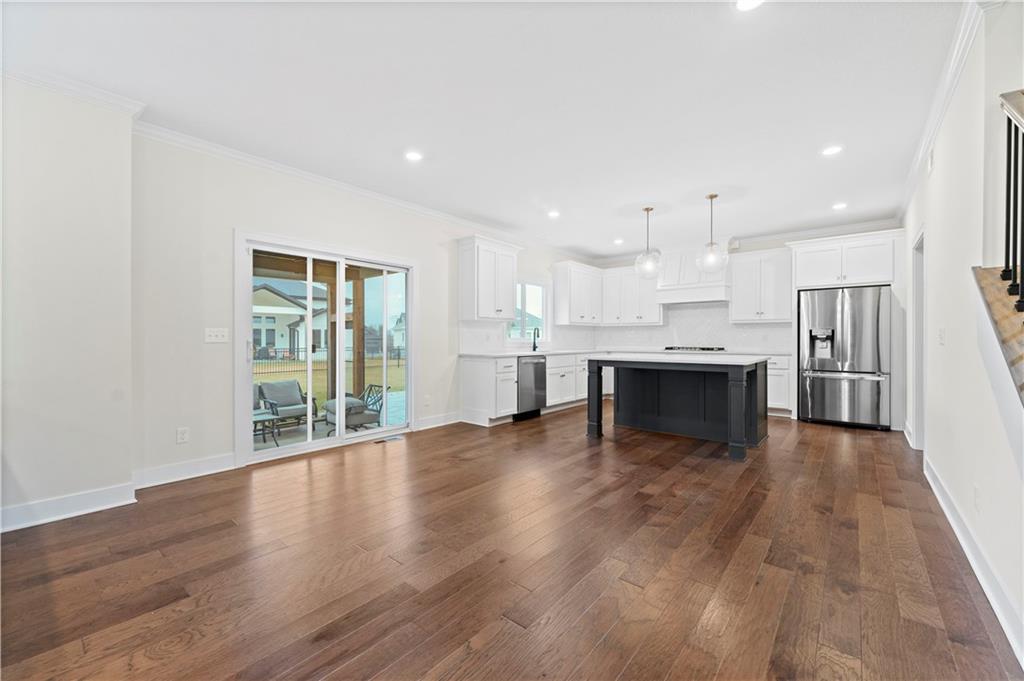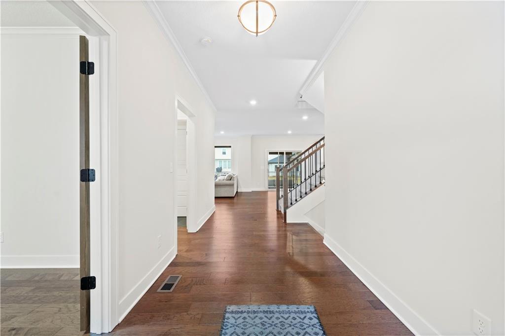 Stunning 6-bedroom, 5-bathroom home with ample space and luxurious features throughout. The main level offers a versatile guest bedroom or office, while the second floor boasts 4 additional bedrooms, including a spacious primary suite with a large bathroom and oversized closet. The finished basement is an entertainer's dream, featuring a theatre room, wet bar, home gym, and a bonus bedroom with a full bath. Outdoors, enjoy the screened-in patio, large concrete patio with built-in fire pit, perfect for gatherings. Centrally located with easy highway access and just a short walk or bike ride to nearby shopping. The Reserve at Woodside Ridge offers a convenient location to highway access, shopping centers, and the Rock Island Trail. The amenities complex features: a club house, pool, pickleball court, hammock garden, and playground area. The HOA dues also include trash, recycling, and paved walking trails.