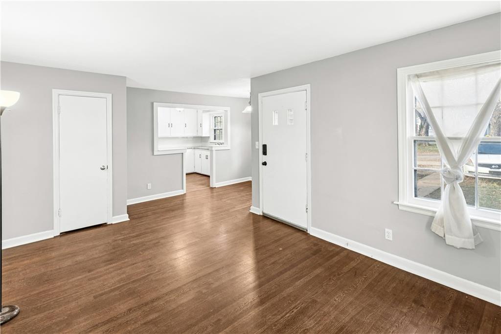 Cute as a button!!! Move in ready...2 bedroom, 1 bath home has been updated throughout. This open floor plan is light and bright throughout. Large living room connecting to the dining area. Kitchen is open to the living space and boasts granite countertop. All appliances stay!!! The homes two bedrooms have been recently painted as well as the bathroom. Laundry room is off of the kitchen and leads to the fenced backyard and patio with pergola. Other features...pantry in the laundry room, sweet front porch, hardwood floors throughout, off-street parking, dead end street with walking path to a city park. Brand new siding. Newer roof, HVAC, and water heater. This home has everything ready for you to move right in and simply enjoy. Come make this home yours today!