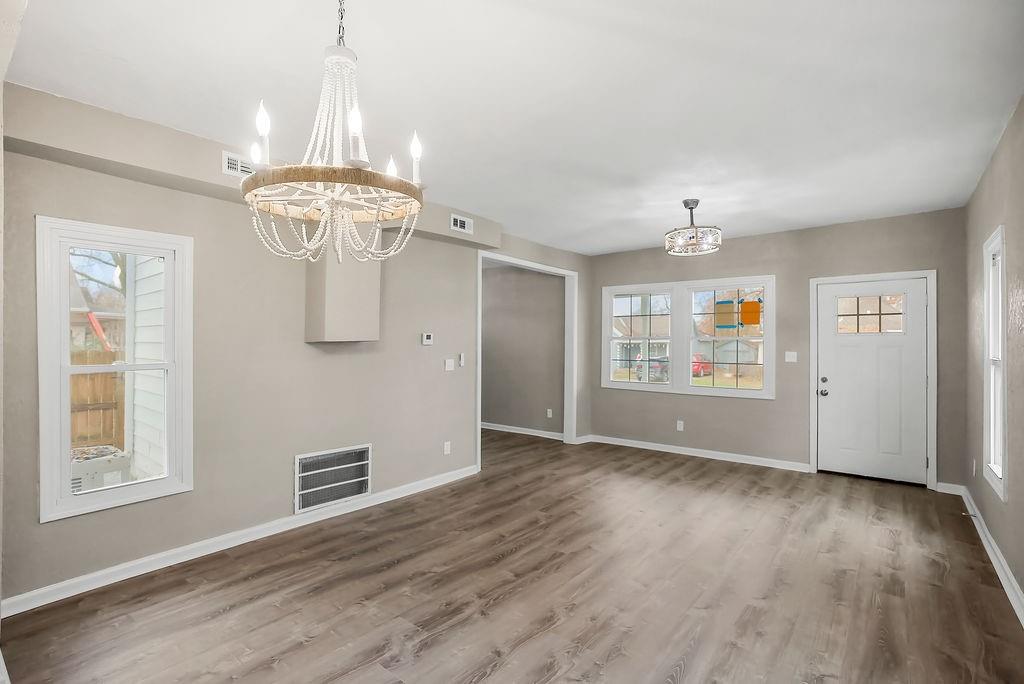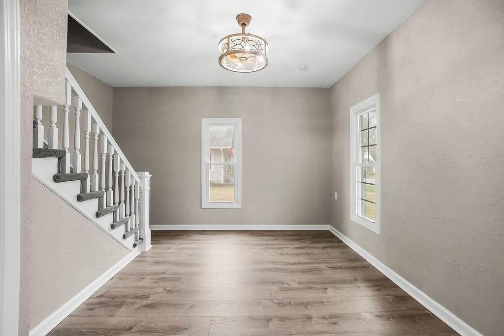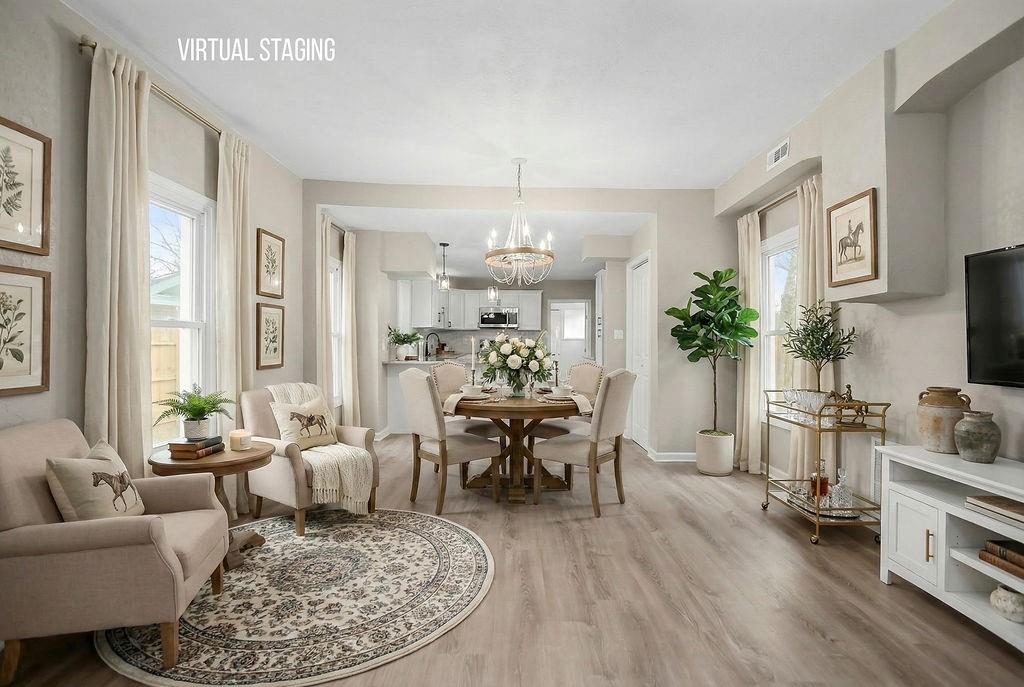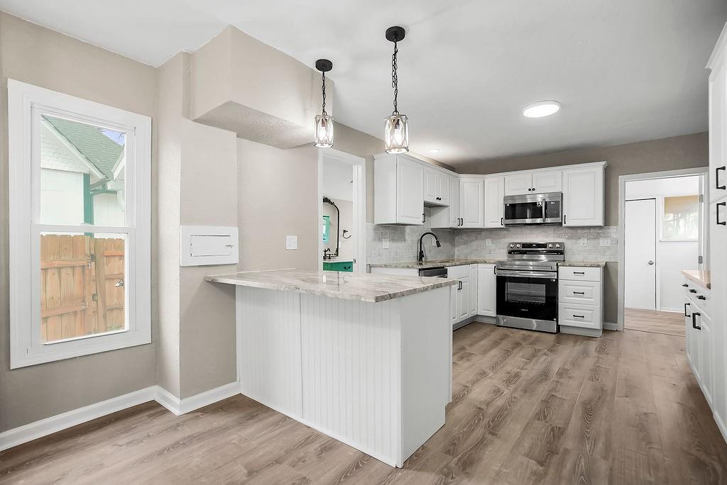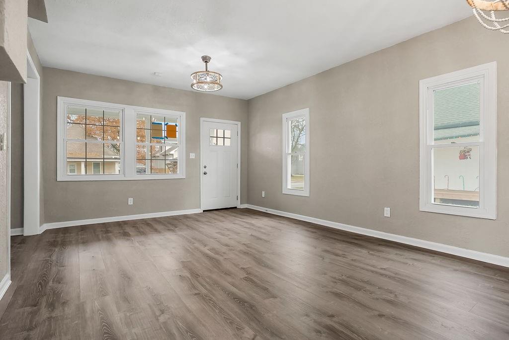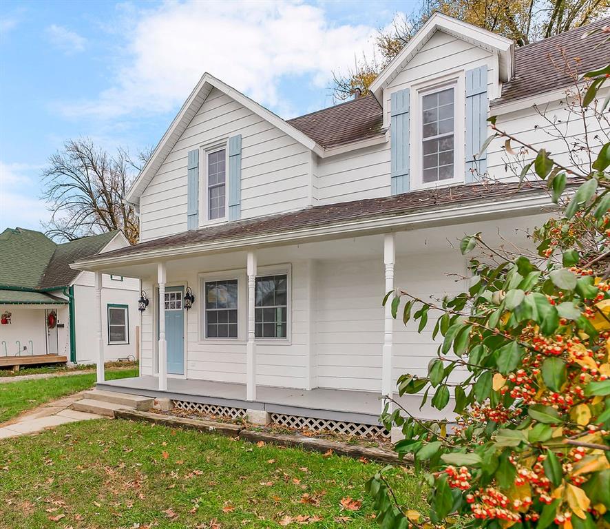 Welcome to this renovated, move-in ready farmhouse! This charming property perfectly blends rustic character with modern convenience. Forget the stress of major repairs; this home boasts significant, high-ticket updates for added peace of mind. These crucial updates include a brand-NEW roof, a high-efficiency NEW HVAC system, and NEW thermal windows. Step through the front door and be greeted by a beautifully curated interior featuring a chic modern farmhouse aesthetic. The entire main level is unified by beautiful, durable luxury vinyl wide plank flooring in a sophisticated neutral driftwood oak shade, offering both style and resilience. New, stylish farmhouse lighting fixtures add character and warmth throughout the space. The layout of the main floor caters to both formal entertaining and casual living. A dedicated formal living room sits near the entry. While the family, dining and kitchen are all connected. The brand-new kitchen features new cabinetry, lovely granite countertops, new stainless steel appliances and a pantry. Convenience is key on the main level. Just off the kitchen is the main floor laundry, Completing this level is an updated full bathroom that features a playful color on an old-world style vanity which is complimented by crisp white tile bath surround and classic, marbled luxury vinyl floor tiles. The upper level is dedicated to the sleeping quarters. The master suite is a pleasant retreat, offering a fully remodeled ensuite bathroom that has a fresh, clean design aesthetic. The second bedroom rounds out the upstairs. The covered patio out back provides a great space for relaxing with your morning coffee or hosting outdoor festivities. The Fully Fenced yard offers excellent privacy and provides a secure and charming space for pets, play, and gardening. Don't miss the opportunity to make this adorable, updated, and truly move-in ready farmhouse your own!