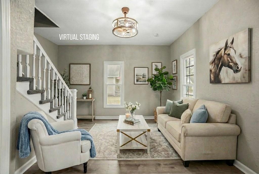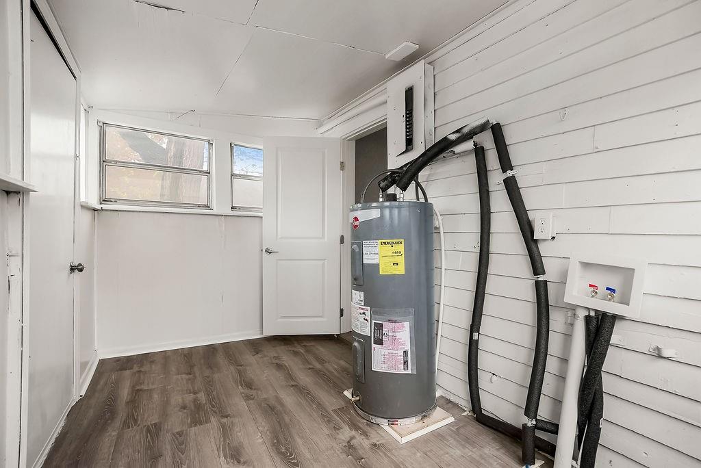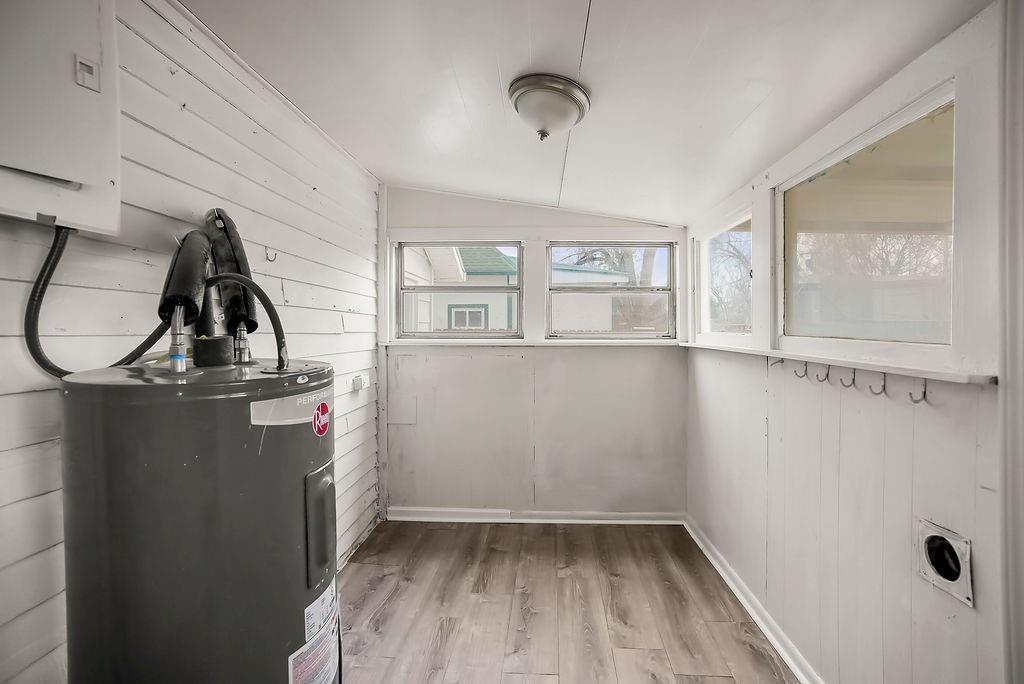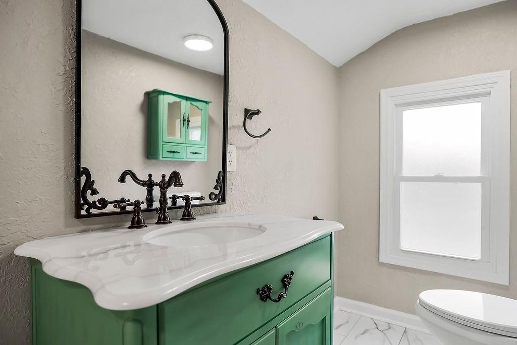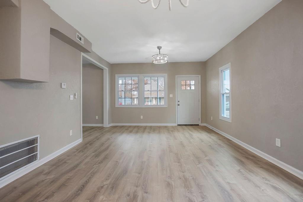 Welcome to this renovated, move-in ready farmhouse! This charming property perfectly blends rustic character with modern convenience. Forget the stress of major repairs; this home boasts significant, high-ticket updates for added peace of mind. These crucial updates include a brand-NEW roof, a high-efficiency NEW HVAC system, and NEW thermal windows. Step through the front door and be greeted by a beautifully curated interior featuring a chic modern farmhouse aesthetic. The entire main level is unified by beautiful, durable luxury vinyl wide plank flooring in a sophisticated neutral driftwood oak shade, offering both style and resilience. New, stylish farmhouse lighting fixtures add character and warmth throughout the space. The layout of the main floor caters to both formal entertaining and casual living. A dedicated formal living room sits near the entry. While the family, dining and kitchen are all connected. The brand-new kitchen features new cabinetry, lovely granite countertops, new stainless steel appliances and a pantry. Convenience is key on the main level. Just off the kitchen is the main floor laundry, Completing this level is an updated full bathroom that features a playful color on an old-world style vanity which is complimented by crisp white tile bath surround and classic, marbled luxury vinyl floor tiles. The upper level is dedicated to the sleeping quarters. The master suite is a pleasant retreat, offering a fully remodeled ensuite bathroom that has a fresh, clean design aesthetic. The second bedroom rounds out the upstairs. The covered patio out back provides a great space for relaxing with your morning coffee or hosting outdoor festivities. The Fully Fenced yard offers excellent privacy and provides a secure and charming space for pets, play, and gardening. Don't miss the opportunity to make this adorable, updated, and truly move-in ready farmhouse your own!