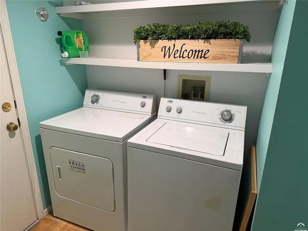 Beautiful maintenance-free townhouse in a quiet West Lawrence neighborhood. Rare end-unit offers lots of windows & sunlight. Spacious open floor plan with hardwood floors and nicely updated kitchen & appliances. Main floor primary bedroom and 2 more bedrooms & bonus room upstairs. Amazing oversized deck that is surrounded by large shade trees. Pella windows with built-in blinds.