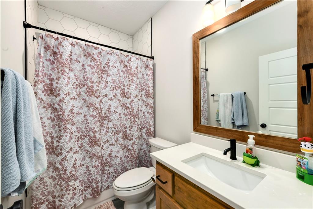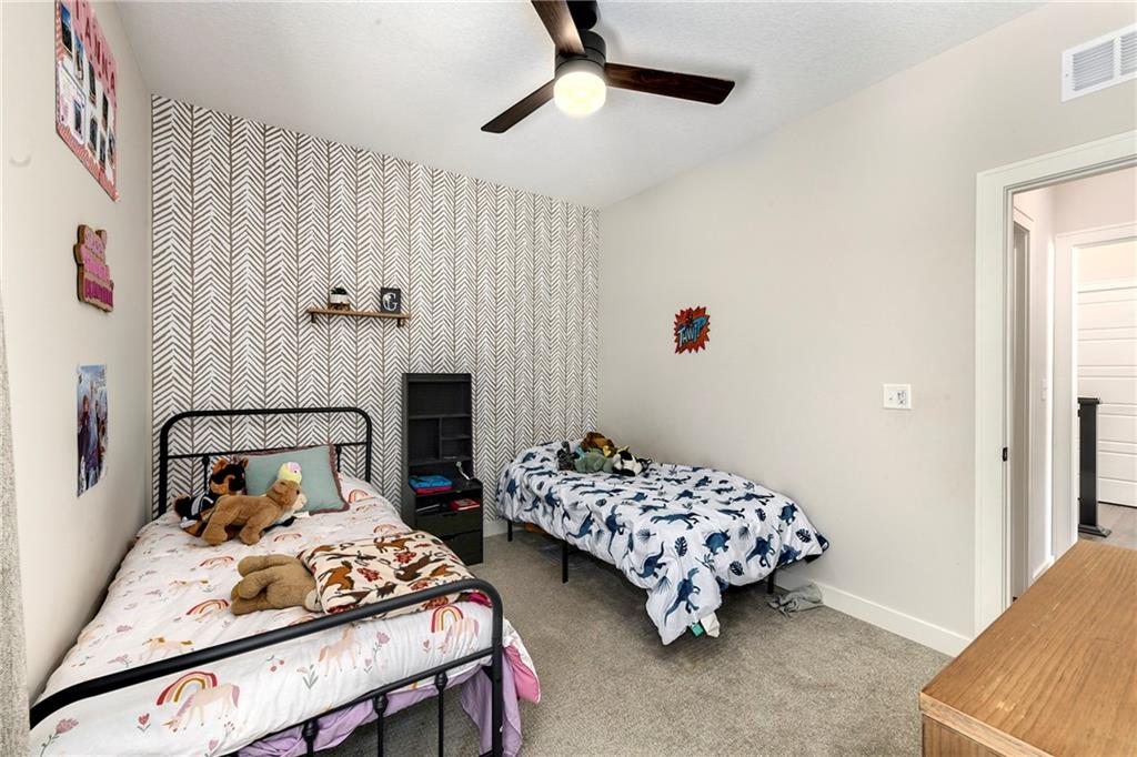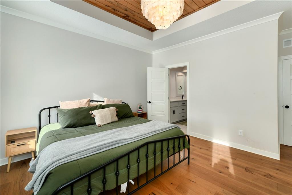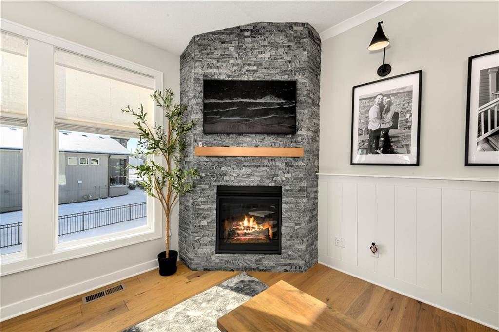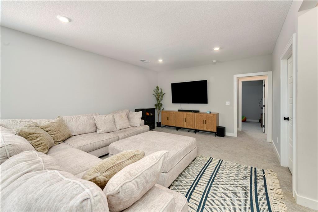 Immaculate 2-year-old Reverse Ranch on a premium corner lot featuring a modern open layout, upgraded finishes, and exceptional indoor/outdoor living spaces. This former model home showcases a spacious great room with floor-to-ceiling stone fireplace, large windows for abundant natural light, and engineered hardwood floors throughout the main living areas. The designer kitchen includes quartz countertops, large center island w/ seating, upgraded trim, Gas Range w/Convection, pot-filler, stainless appliances, farmhouse sink, brushed brass fixtures, glass-door display cabinetry, and subway tile backsplash. The dining area flows seamlessly to the covered deck overlooking the fenced backyard. The primary suite offers a tray ceiling with wood plank detail, large windows, and a spa-inspired bath with dual quartz vanities, upgraded lighting, a walk-in tile shower with bench, herringbone accent wall, and matte black fixtures. The oversized walk-in closet connects conveniently to the laundry and mudroom w/ built-in drop zone. Additional main-level bedrooms include upgraded lighting & modern wall accents along with attractive wood finishes in the vanity and matching mirror. A second full bath features contemporary vertical tile and updated finishes. The finished lower level provides a generous second living area with recessed lighting, plush carpet, & a wet bar with custom backsplash. Additional bedroom & full bath offer flexibility for guests or extended living arrangements. The unfinished portion is plentiful too, providing value add for future finished space or great storage as it sits. Outdoor features include a covered deck, fully fenced yard with wrought iron fencing, and ample space for recreation. The climate-controlled garage is ideal for storage, hobbies, or year-round comfort. Additional upgrades include premium lighting throughout, wainscoting and trim accents, energy-efficient windows, & a clean modern color palette. Move-in ready and well maintained.