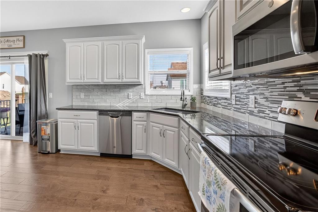 Welcome home to this spacious 4-bedroom, 3-bathroom property in the Basehor-Linwood School District. Enter into an inviting open-concept layout and abundant natural light throughout. The kitchen features granite countertops, stainless steel appliances, a pantry, and generous cabinet space—flowing seamlessly to a large deck that’s perfect for grilling or relaxing. The main level also includes the first living space, convenient laundry access, and a primary suite complete with a walk-in closet, double-sink vanity, and separate tub and shower. Downstairs, a second living area provides flexibility for entertaining, work, or play. A 3-car garage adds valuable storage and room for hobbies. Located just blocks from the Basehor Community Library and minutes from highway access, this home blends everyday convenience and updated living.