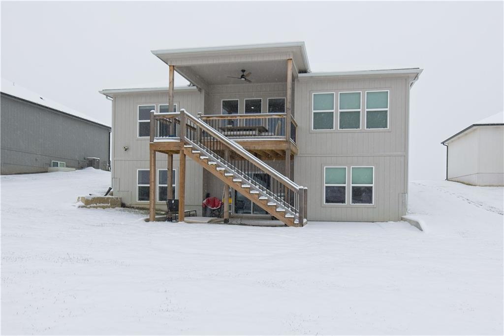Fantastic, nearly-new reverse 1 1/2 story with 3 car garage is a "must see" property. KCMO address; Liberty schools. This contemporary style home, built in 2024, boasts an open floor plan with 4 bedrooms and 3 full baths. The master suite plus 2 bedrooms and 2nd bath are located on the main level; and a large rec room, 4th bedroom and 3rd bathroom are on the finished lower level with walkout (rare for this neighborhood). The kitchen features upgraded stainless steel appliances, granite countertops and walk-in pantry. Beautiful wood flooring throughout the main living area along with a gorgeous fireplace. The covered deck offers a great place to enjoy the view plus there's a covered lower level patio, ideal for grilling or chilling. The unfinished portion of the lower level provides abundant storage space and could easily be updated to add a 5th conforming bedroom. HOA recently moved from developer control to property owner control. Professional Photos Coming Soon.