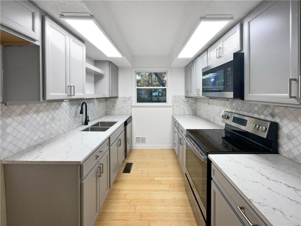 Welcome to this charming property that boasts a cozy fireplace, perfect for those chilly evenings. The neutral color paint scheme provides a calming ambiance throughout the home. The kitchen is a chef's dream with an accent backsplash and all stainless steel appliances. Step outside to enjoy the deck, perfect for entertaining or simply relaxing. The fenced in backyard ensures privacy outdoor living space. The home has been freshly painted inside, adding to its appeal. This property is a must-see for those seeking a comfortable and stylish home.. Included 100-Day Home Warranty with buyer activation