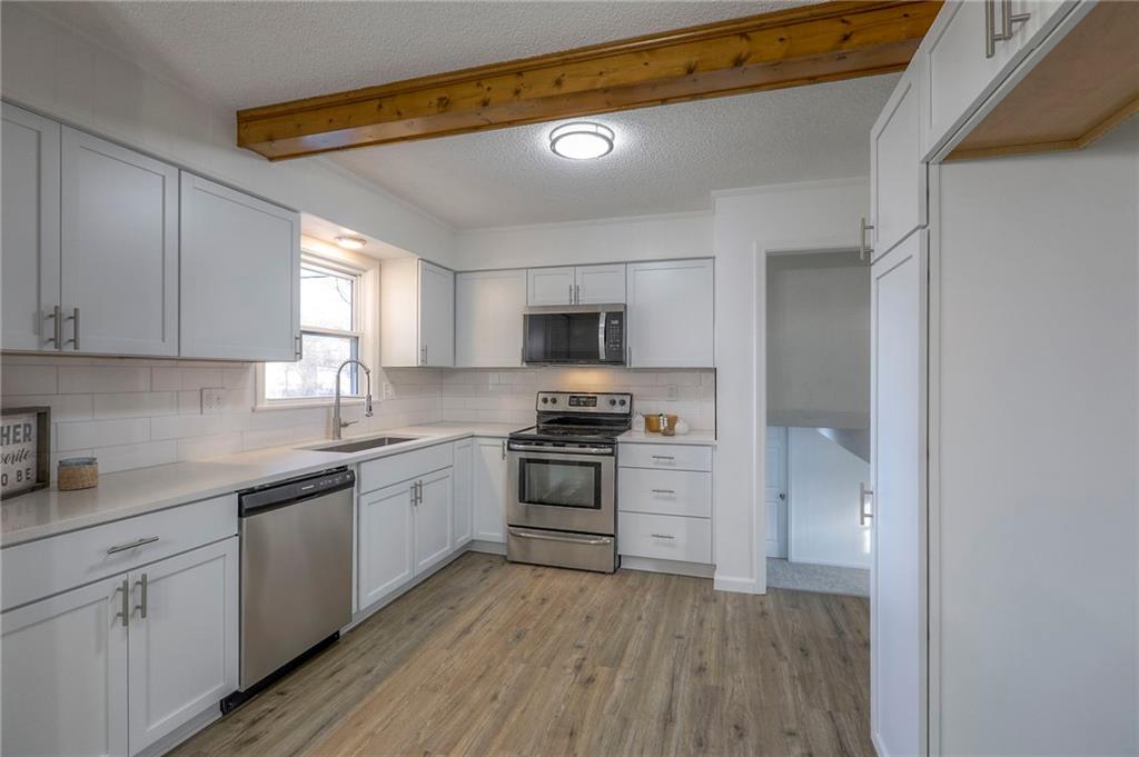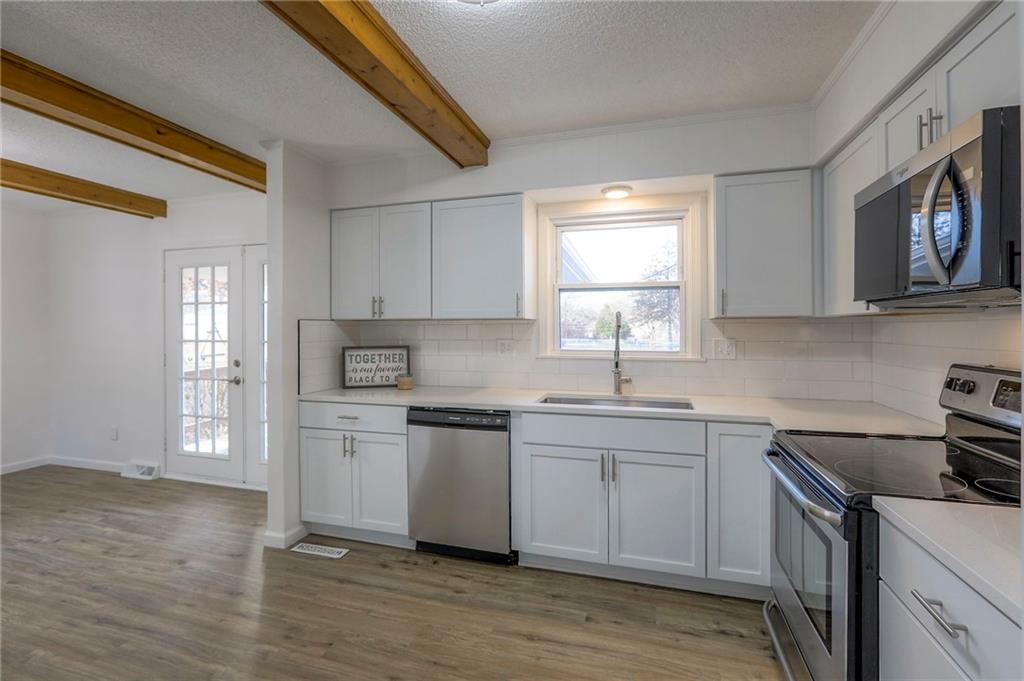 Beautifully remodeled 3-bedroom, 3-bath home with a fourth non-conforming bedroom—ideally situated in an award-winning Lee’s Summit school district. Enjoy extra living space with both a generous family room and a welcoming living room, featuring a cozy wood-burning fireplace perfect for relaxing evenings. Newly updated kitchen featuring beautiful wood beams, quartz countertops, modern cabinets, a stylish backsplash and stainless steel appliances. Fresh interior and exterior paint and all-new flooring throughout make this move-in ready home. Step outside to your covered deck and large, fenced backyard with patio—ideal for entertaining, play, or pets. The garage includes an additional shower and sink, and is already plumbed for a toilet, adding flexibility for hobbies or workshop needs. For added peace of mind, the seller is providing a one-year Old Republic Home Warranty. Don’t miss this opportunity for space, style, and convenience—all in a fantastic location!