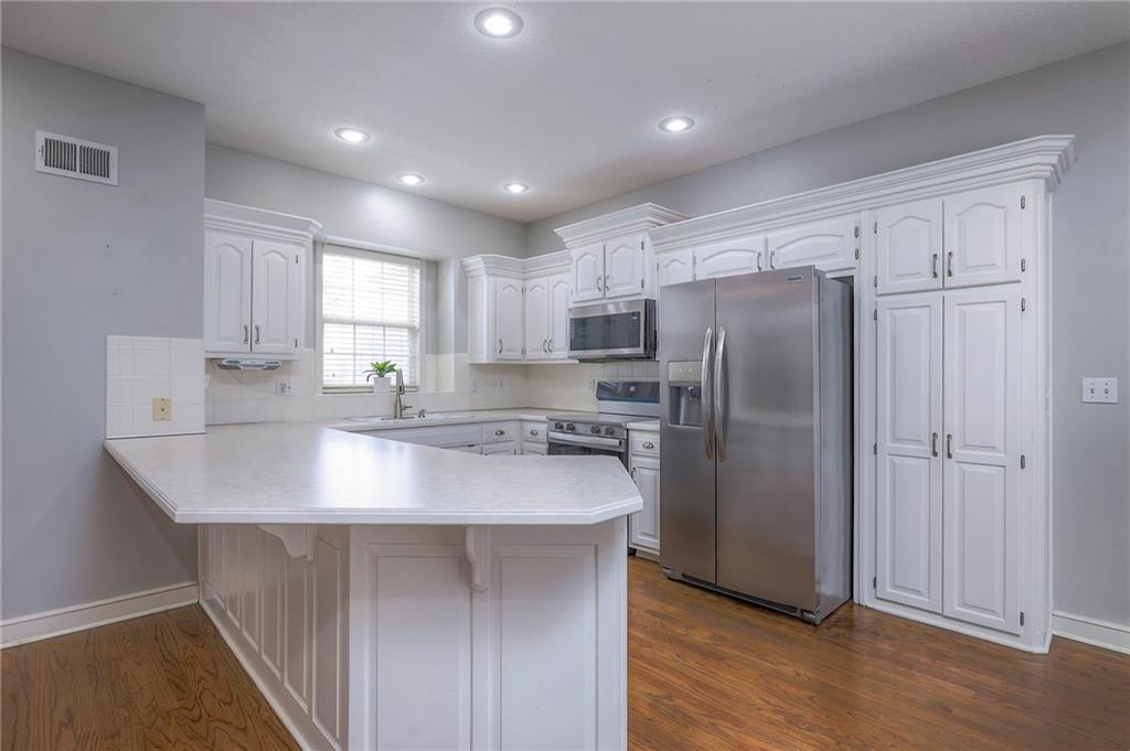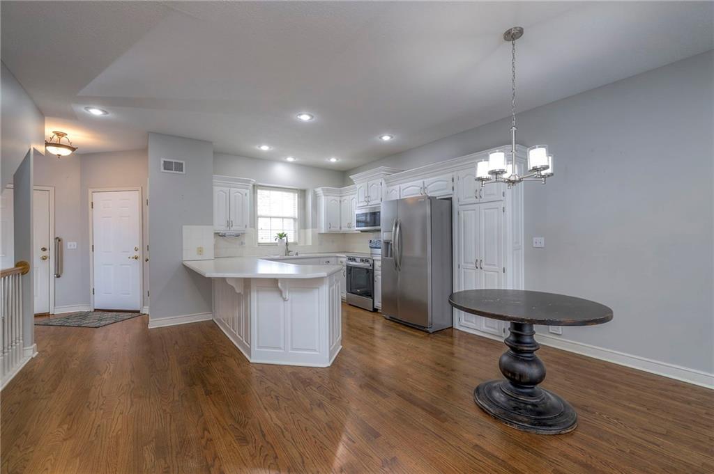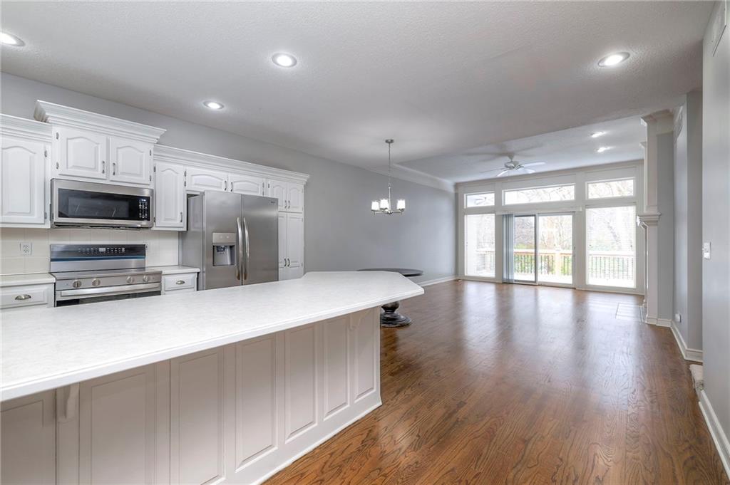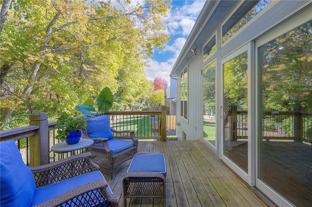 Situated in a quiet cul-de-sac on a private treed lot, this delightful one-owner home provides exceptional main-level living. Beautiful hardwood floors added throughout the main level are a perfect complement to the white kitchen cabinets (w/expansive counter space). With high ceilings, the open area feels spacious yet comfortable, the floor plan is fantastically functional, and the see-through fireplace adds both character and warmth. The large main level bedroom shares the fireplace, and you'll enjoy it's spacious bath with jetted tub and shower. A large 2nd bedroom with private bath and walk-in closet are on the 2nd level, while the finished daylight basement provides additional living area. The floor in the primary bath has been updated, the sliding door has been replaced, appliances are brand new, and cosmetics are neutral. This is a great home in a wonderful maintenance-provided community!