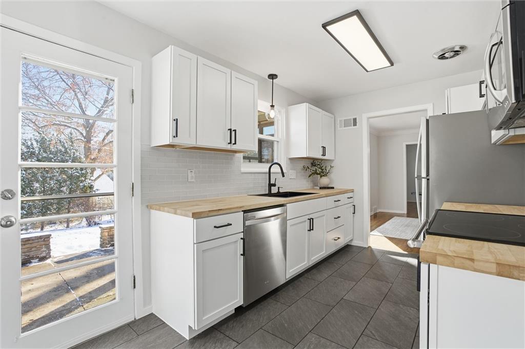 Close to Ward Parkway and tucked into a quiet cul-de-sac, this updated ranch brings together location, convenience, and everyday comfort. The main level has hardwood floors, spacious living areas, and a sunroom that instantly becomes everyone’s favorite spot. The kitchen has been thoughtfully redone with new flooring, cabinets, fixtures, countertops, and extra pantry storage. The hallway bathroom received a full refresh too. Fresh paint, updated fans, RGB wifi lighting, Nest thermostat, Arlo doorbell, and keyless entry round out the modern touches. You’ll appreciate the practical perks: built in bedroom storage, a laundry chute that actually makes laundry easier, and an attic fan that cools the home fast on summer evenings. The fenced backyard and patio are set up for grilling nights, yard games, gardening, or relaxing while the sprinkler system keeps it all green. The oversized two car garage with an EV charger and wide driveway is rare for homes of this era. The home also features a new plumbing line from the house to the city connection. Downstairs, the unfinished 1272 square foot basement includes a half bath, workbench, and plenty of space for storage, hobbies, or a home gym. Walk to Target, Trader Joe’s, Chick-fil-A, Crumbl, Ward Parkway Center, and close by Waldo, Brookside, and the Plaza. It’s a central KC location with everything within reach.