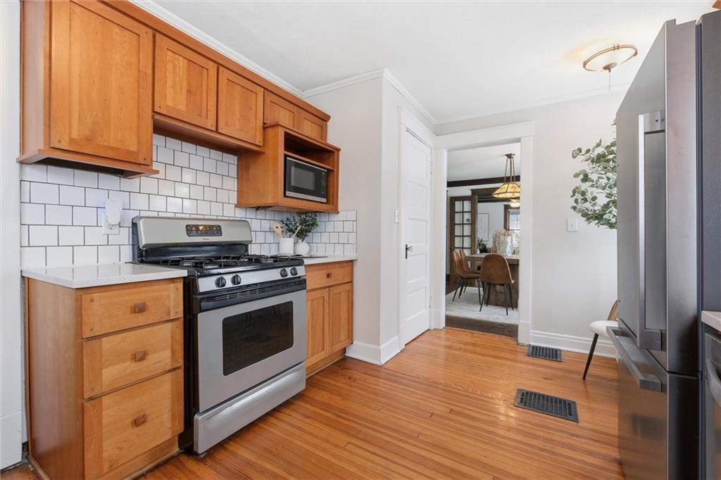 Step onto the charming front porch of this timeless three-story home and instantly feel its character. Thoughtful Craftsman details, original moldings, rich woodwork, and vintage hardware create warmth at every turn while tasteful updates blend modern comfort with classic style. The inviting living room centers around a gorgeous stone fireplace, perfect for slow mornings or evenings with friends, and flows seamlessly into the formal dining room for easy entertaining. The updated kitchen features quartz countertops, a gas range, and newer stainless steel appliances. Upstairs, retreat to the serene primary suite with two walk-in closets and a beautifully renovated bath complete with double vanity, marble counters, tile floor, and a spacious walk-in shower. Additional bedrooms offer versatility for guests, office, or play space. The partially finished lower level is ready for your personal touch and provides valuable extra living or storage space. Location is everything, and this one is unmatched. Just blocks from Crestwood Shops, South Plaza, and the streetcar extension for quick access to the Plaza, UMKC, and downtown. Spend your weekends strolling to Loose Park or exploring nearby trails surrounded by beautiful scenery. This home sits at the heart of Kansas City’s most beloved neighborhoods with incredible walkability. Charm, updates, and an A+ location. Make this endearing home yours.