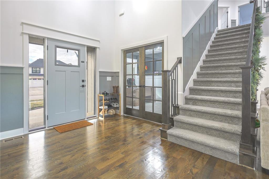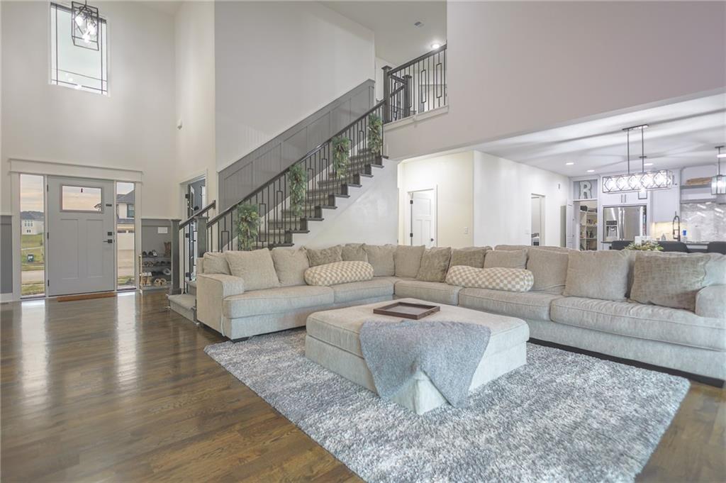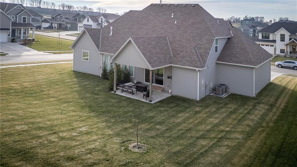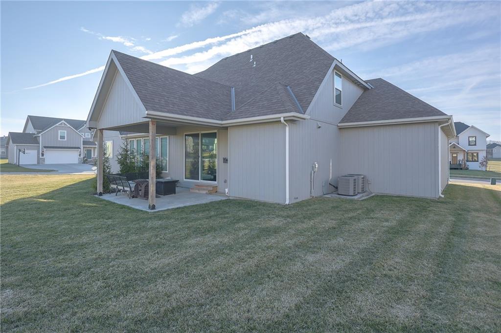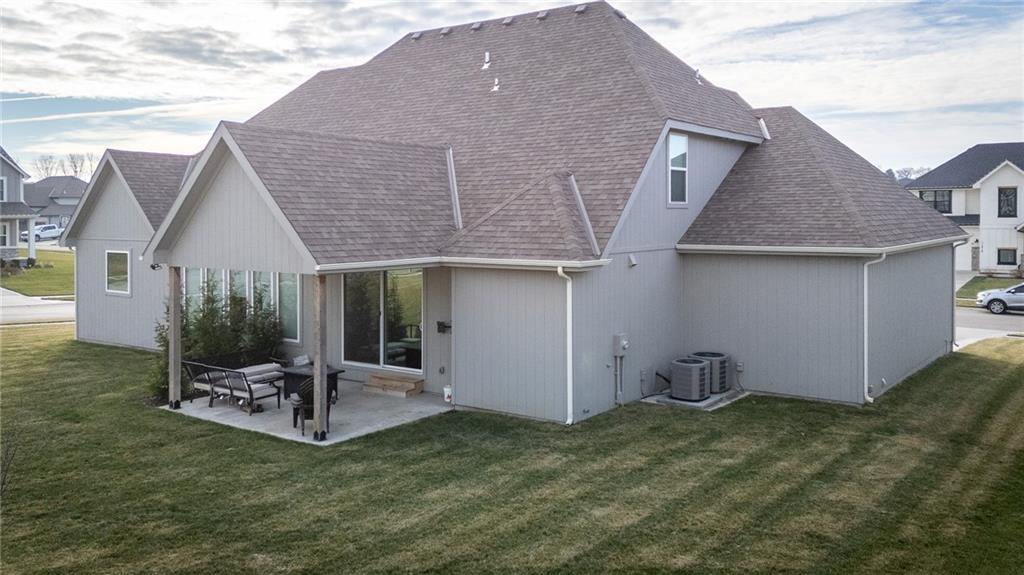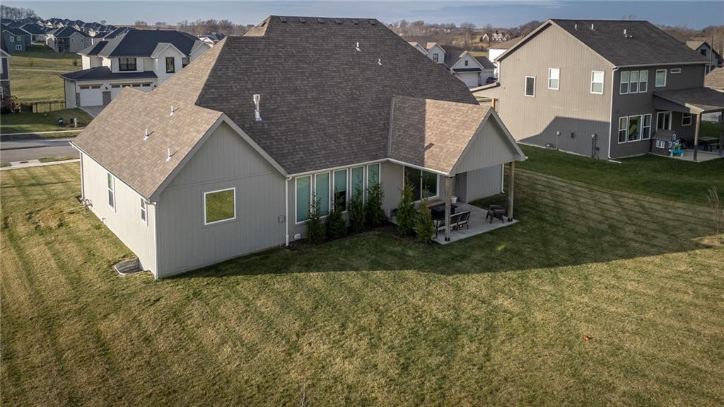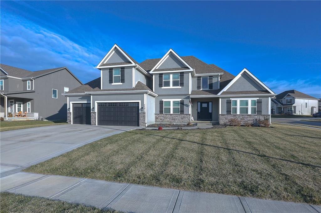 Perfectly sited on a premier corner lot within the prestigious Prairie Field community—highly acclaimed Liberty School District—this exceptional 1.5-story residence by McBee Custom Homes redefines modern luxury. The Gallatin is a home where architectural intention meets elevated comfort, creating a sophisticated living experience that feels both grand and effortlessly livable. From the moment you step inside, you’re welcomed by an awe-inspiring Great Room with dramatic vaulted ceilings and sun-filled, open-concept living. The designer kitchen serves as the heart of the home, anchored by a statement island that invites conversation and connection. An expansive walk-in pantry offers the kind of storage typically reserved for custom luxury builds. The main-level primary suite is a serene sanctuary, featuring a spa-inspired bath with a free-standing soaking tub, an indulgent walk-in shower, and timeless finishes that exude calm and sophistication. Upstairs, three beautifully appointed bedrooms and two full bathrooms offer exceptional versatility. Whether used as private guest suites, a children’s wing, a loft, or a boutique-style office, this level adapts seamlessly to your lifestyle. A second flex room on the main level elevates functionality even further—perfect as an executive office, library, music room, playroom, or formal dining space. Your possibilities are truly limitless. The lower level provides an expansive storage area with an egress window, creating the perfect canvas for a future bedroom or custom-designed additional living quarters. Outdoors, the home’s ideal southern orientation provides luxurious shaded evenings on the covered porch—your private retreat for slow sunsets, quiet moments, and effortless entertaining. The Gallatin is more than a home—it’s a statement of style, comfort, and craftsmanship in one of the area’s most desirable communities. A rare opportunity to own a property where luxury meets lifestyle in the most seamless way.