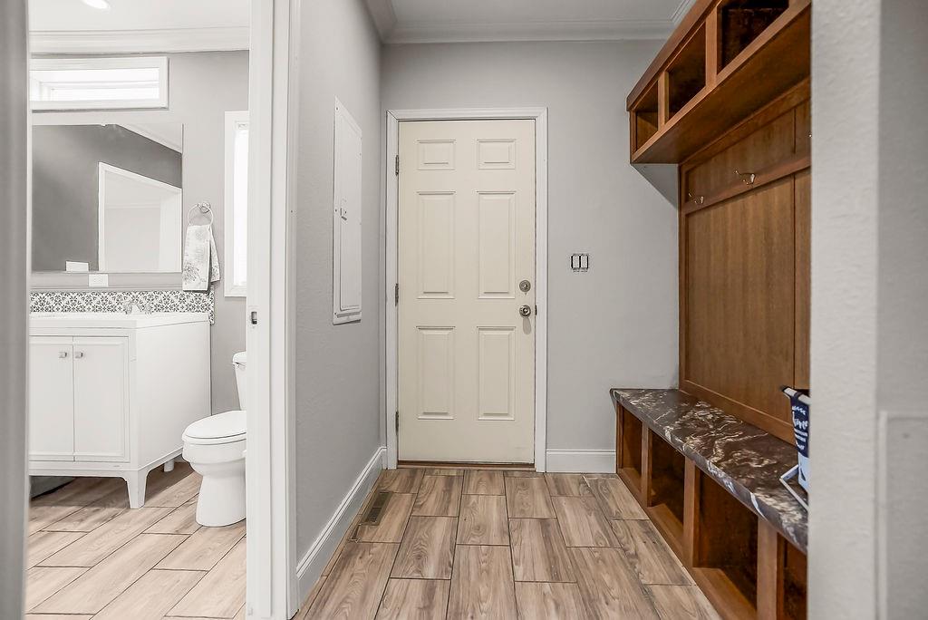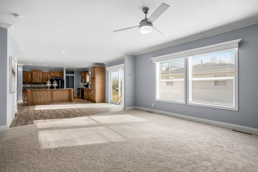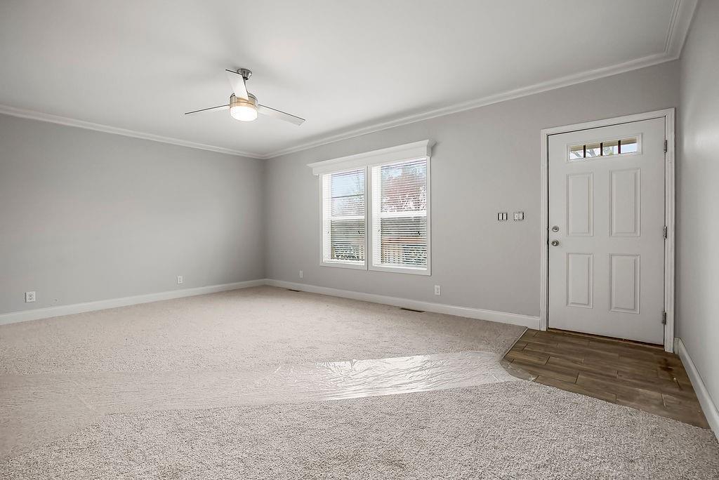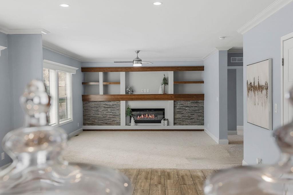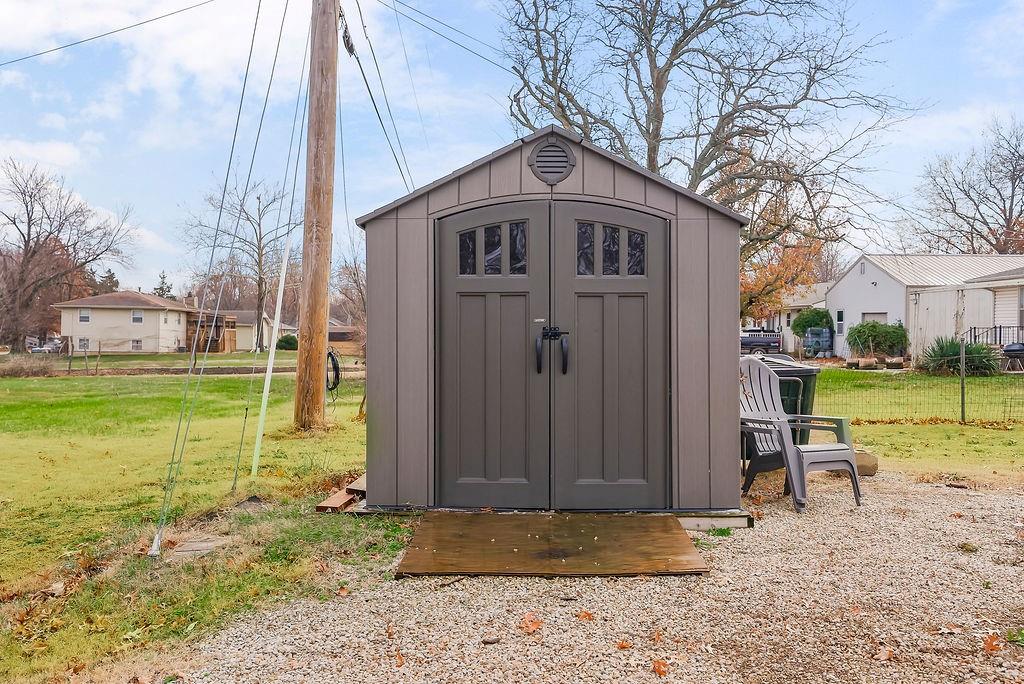 Welcome home to this charming 3-bedroom, 2-bathroom ranch with an inviting front porch/deck space perfect for relaxing. Inside, you will find a beautifully updated kitchen opening seamlessly into the dining and living areas, creating a bright and open layout ideal for everyday living and entertaining. The living room features a modern fireplace with built-in shelving for both style and storage. Bathrooms are nicely done, one with a tub/shower combo and the other is equipped with a spacious walk-in shower. Outside, enjoy a nice yard complete with shed for extra storage. A wonderful blend of comfort, style and functionality! Home is being sold as is.