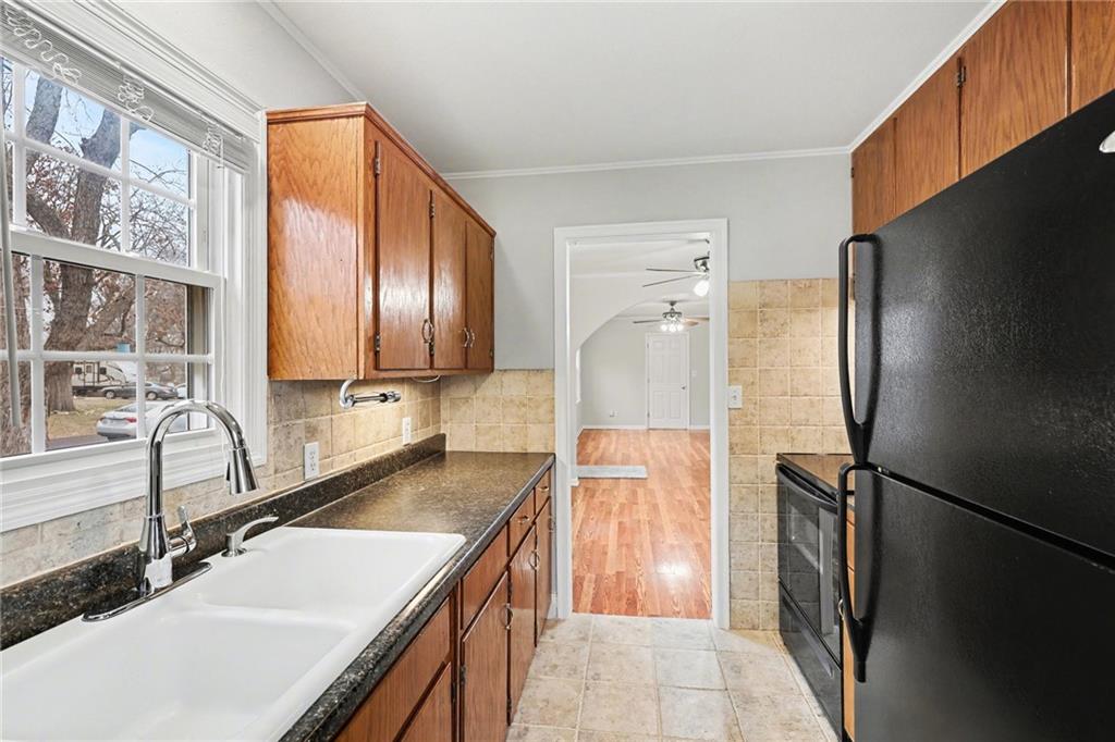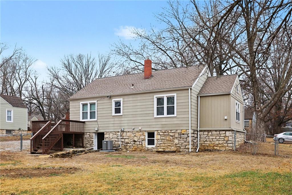 Charming ranch style home in Raytown with a flexible layout and fresh updates! This 2-bedroom, 1-bath home features a durable composite front porch, a front-facing living room, dining area, and kitchen. Plus two bedrooms located at the back of the home with a full bath in between, for added privacy. The main-level laundry room offers the potential to be converted into a 3rd bedroom or office space, if the laundry is relocated to the basement. Inside, the home is freshly painted throughout, with brand new carpet in the two bedrooms. The basement includes ample storage space and backyard access. Enjoy your deck overlooking the backyard, partial fencing for your pets or play area. Mature foliage along the back of the property creates a peaceful, private green-space feel.