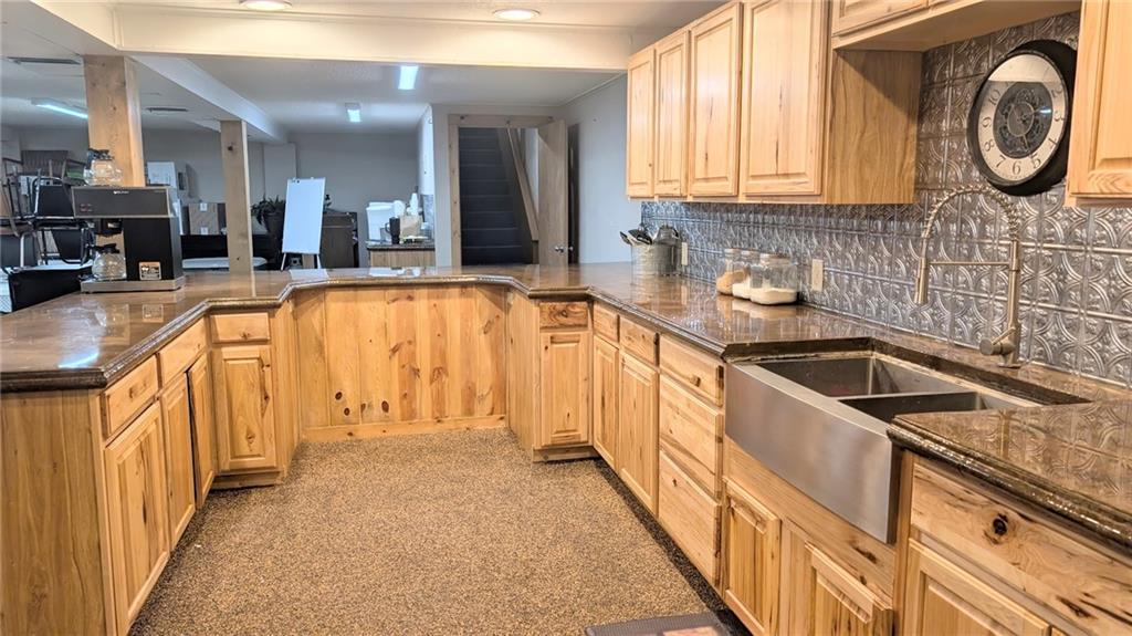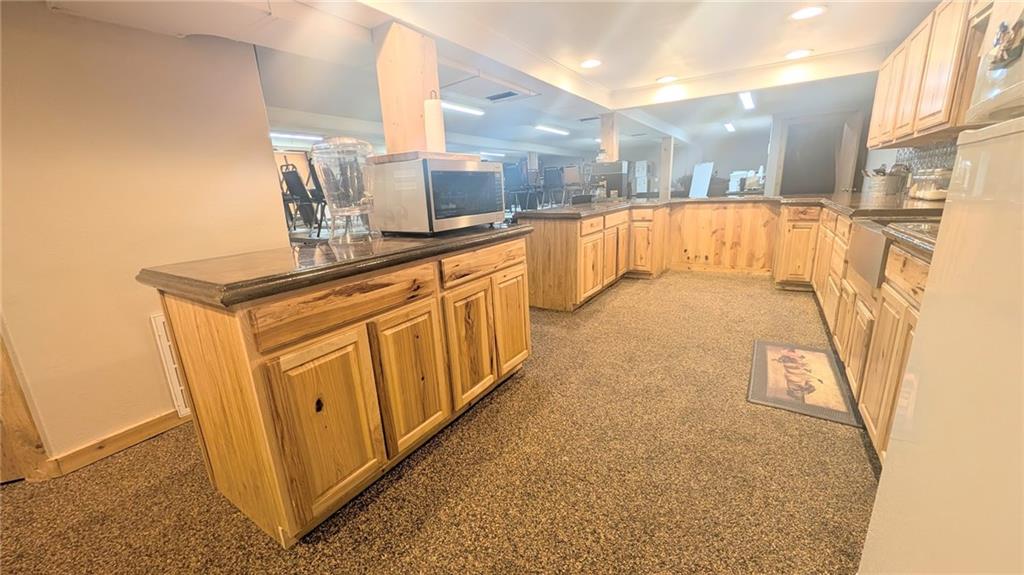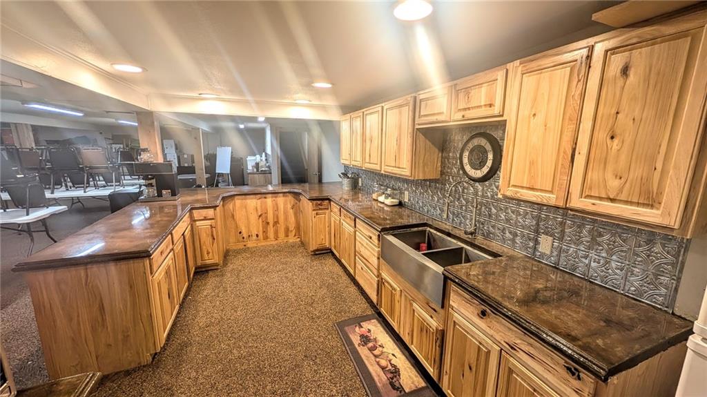 This expansive property in El Dorado Springs, Missouri, offers incredible potential for a variety of uses, making it an ideal investment. While currently configured as a church, its versatile layout and features lend themselves perfectly to numerous other ventures. Consider the possibilities: this structure is well-suited for an adult daycare or a childcare center, offering ample space for activities and dedicated areas. With some creative vision, this property could also be transformed into a unique residential dwelling, providing spacious living areas and a distinctive design. Beyond these, you could envision a community center, a private school, or even a specialized event venue—the options are truly vast. The walkout basement is a true highlight, boasting a beautiful and highly durable pebble epoxy-style floor. This unique finish is not only visually appealing but also incredibly practical for high-traffic areas. The kitchen is another standout, featuring stunning epoxy countertops and an abundance of cabinetry—perfectly equipped for a commercial kitchen (please note: the owner will be removing the stove and griddle). This property in El Dorado Springs represents a remarkable opportunity to invest in a highly adaptable space with significant upside potential.