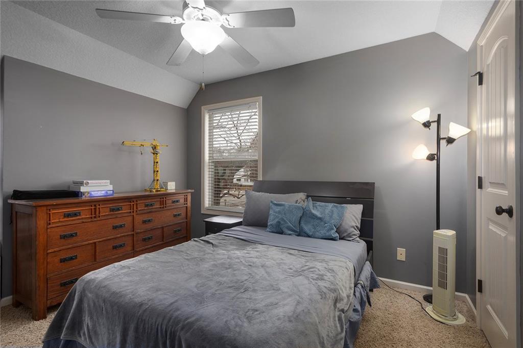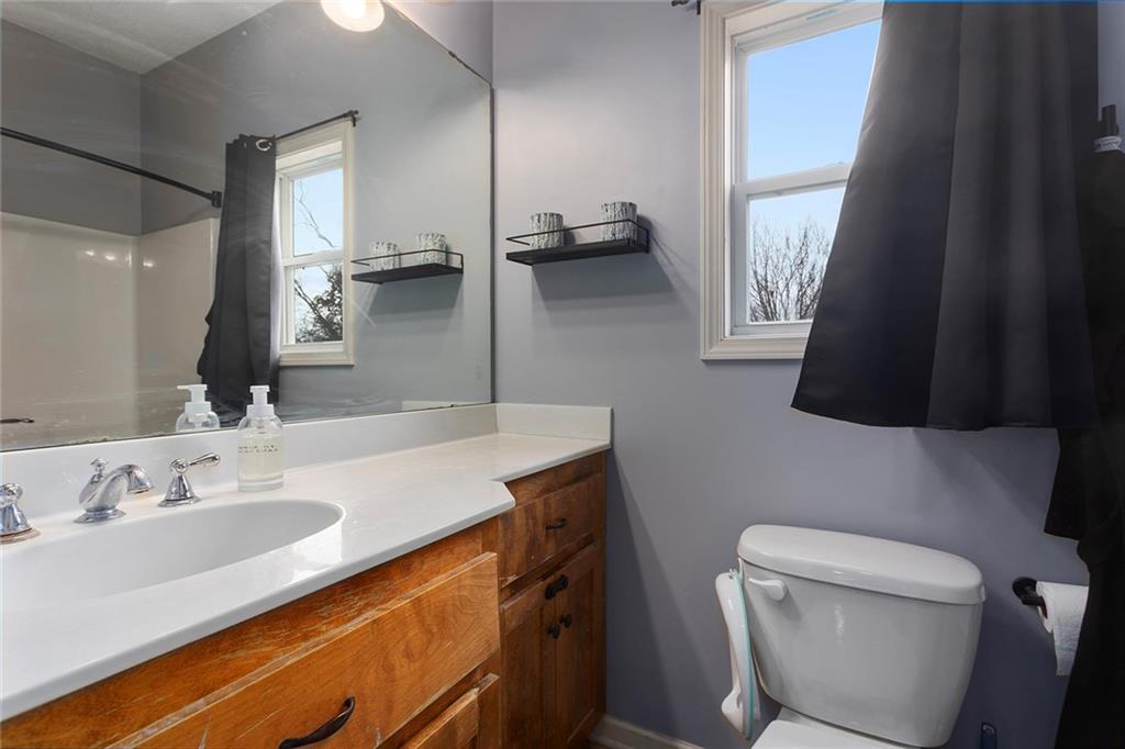 Absolutely CHARMING! This home stands out! Beautiful color and structure outside! INSIDE: A lovely, welcoming living room! Here you will find a working gas fireplace, ceiling fan, unique wall cabinet, and a door to the garage. In the kitchen, there are medium-toned Shaker-style cabinets and a tile backsplash. Stainless steel appliances, nice hardwood floors, an island, room for a table, and a laundry area with a double door opening. A half-bathroom with built-in cabinets is conveniently located on the main floor. Looking out the sliding doors, you see a nice-sized yard with a large deck and a shed that stays. The main floor also boasts the Primary Bedroom with lots of natural light, a ceiling fan, a modern feel, and an ensuite bath with shower/tub combo. As you ascend to the second floor, note the stylish wooden handrail. These stairs lead to two very distinctive bedrooms, each with a ceiling fan, one large window, and one window in a nook. So INVITING and cozy! Upstairs bedrooms share a full bath with a shower over the tub. The basement is partially finished and offers so many creative ways to use the space! There is a vinyl floor, a storage area, an almost finished full bathroom, a BONUS room, and a STUDIO room with noise-cancelling drywall. Nice, 2-inch blinds throughout this home show very nicely, and the lighting throughout is just outstanding! This is such a stylish home! Come and see it TODAY!