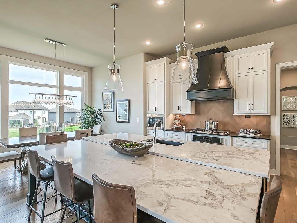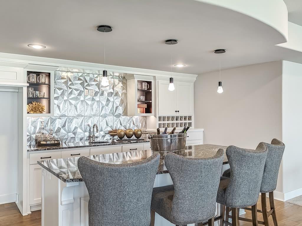 The Courtland Reverse by Don Julian Builders--UNDER CONSTRUCTION! THIS HOME IS NOT COMPLETED--the photos shown are from another Courtland MODEL plan that is completed. So much WOW! Fabulous plan with a terrific courtyard with converging doors off the entry--perfect for relaxing and enjoying nature! Useable, large First floor office/den views this indoor/outdoor space! Pub bar area across from the courtyard--enjoy entertaining-great places. FOUR car garage! Great room with vaults and beams--Large dining area with vaults and beams, too! Primary bedroom suite with vault and beams, light, extra-large shower, and laundry ROOM off the huge closet. Second bedroom on first floor w/private bath. Drop station with cubbies by back door. Large kitchen with massive (double slab) island and lots of space. Hidden, back stairs to Lower level: jumbo REC room, extra-sized wet bar; 1/2 bath. 2 additional, sizable bedrooms (each with their own bath and walk-in closet). SO much light! Enjoy Riss Lake amenities: including 3 pools, tennis courts with pickle ball lines, playground, splash pad, walking trails, 134-acre lake for fishing or boating, more!