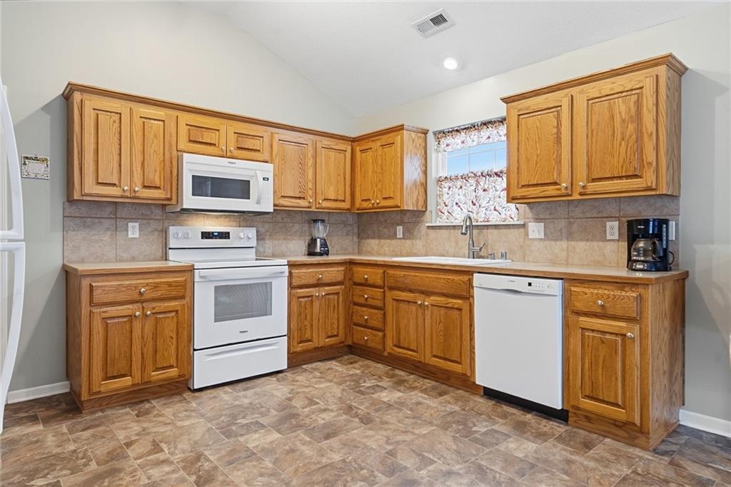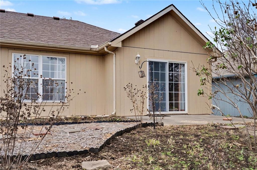 Welcome to this truly well maintained, one-level living home offering 3 spacious bedrooms and 2 bathrooms on a beautiful lot! This home features an inviting open floor plan highlighted by vaulted ceilings and an abundance of natural light throughout. The large, open living room is great for entertaining or perfect for a cozy gathering around the gas fireplace. The kitchen, with ample cabinets and generous counter tops for culinary space, opens to the dining room. The spacious primary bedroom is complete with an ensuite bathroom including walk-in shower, double sink vanity, and large walk-in closet. The laundry room, with cabinets for extra storage, is conveniently located near the 2nd and 3rd bedrooms. Step outside to the beautiful lot with detailed landscaping, thoughtfully designed by a master gardener, perfect for relaxing, entertaining, or simply enjoying the peaceful outdoor setting. This property has zero-entry access (no steps into the home from the front door, back door, or garage). Newer AC, Furnace, and Roof. Tucked away on a non-through street and located within a short distance to the elementary schools, city recreation fields, quaint downtown Baldwin City, and within an easy commute to Lawrence, KC, Eudora, Ottawa and surrounding. With its pristine condition, thoughtful layout, and stunning outdoor space, this property is the perfect place to call home. **Seller is building a home and cannot close/move until the new construction is fully completed - estimated completion date is mid-late February depending on weather**.