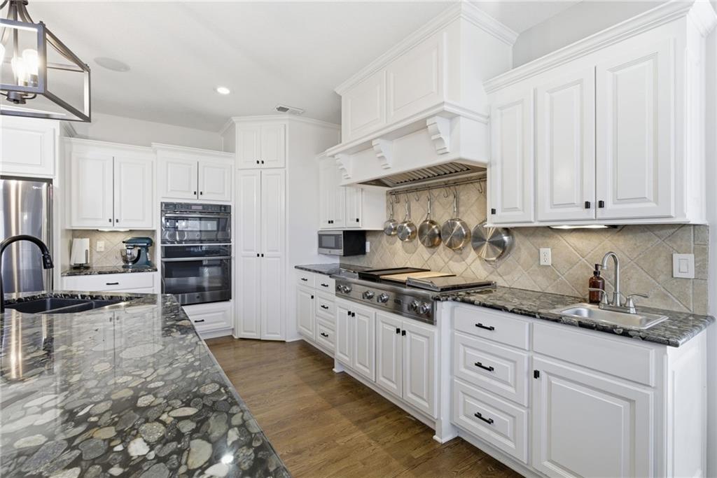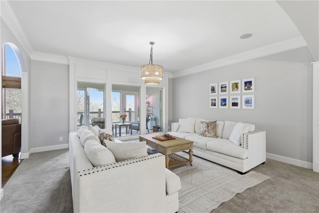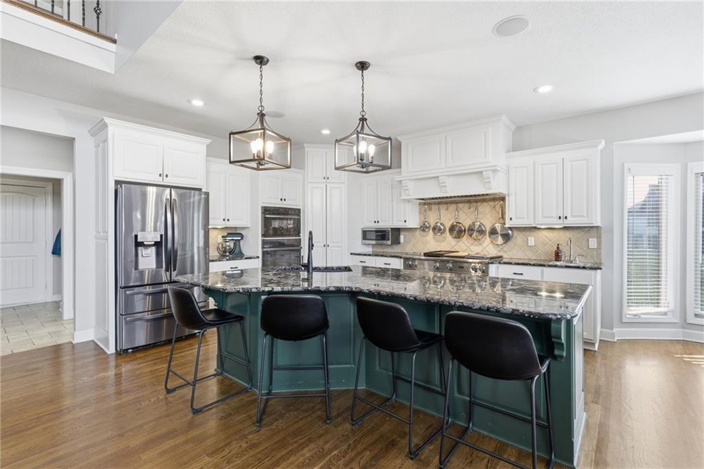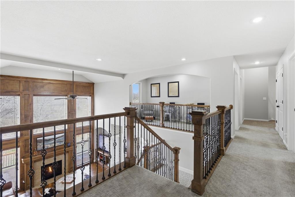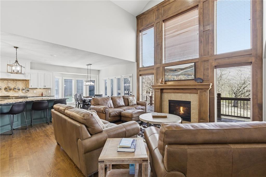 DO YOU NEED MORE SPACE? Attention to detail can be found in this beautiful mastercrafted 1.5 STORY OPEN FLOOR PLAN HOME that features 7 bedrooms & 5.5 bathrooms. Located at the end of a cul-de-sac in the desired Woodland Shores subdivision, this 6,600 sqft PLUS a 600 sqft indoor rec / basketball area. 20' ceiling in the spacious entryway w/ formal staircase! Hardwood & tile flooring throughout the main level which is roughly 2,700+ sqft. The hearth room features a gas fireplace, floor to ceiling windows, & staircase #2. The Chef's kitchen is state-of-the-art, w/ top of the line stainless steel appliances, gas cooktop, upgraded granite countertops, custom cabinets, walk-in pantry, coffee bar, & a spacious island. A formal sitting room, formal dining room, sun room & large study are also located on the main floor along w/ the owners suite which features a “spa-like” bathroom w/ whirlpool tub, walk-in tile shower w/ multiple shower heads & three vanities. The walk-in closet has a hidden door that leads directly to the study. Upstairs, 4 more oversized bedrooms, 3 full bathrooms plus a loft. The walk-out basement features a wet bar, family room, second laundry room & bedrooms 6,7 & Nonconforming 8. Down another flight of stairs to the basketball area that is located under the oversized 3 car garage. Multiple large storage areas along w/ an outside access storage room that is perfect for bikes, scooters & toys. Woodland Shores is an upscale lake community. Nestled on the Northeastern shores of Prairie Lee Lake and just south of Lake Jacomo, it is surrounded by thousands of acres of parkland, trails, and undeveloped woodlands. Enjoy the beautiful 4000 square foot community swimming pool, covered 10 slip marina, and offers quick access to great shopping centers & award-winning Lee’s Summit School District.