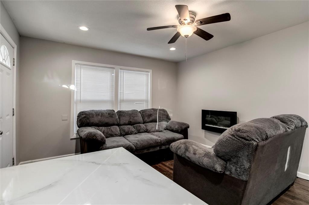 Good things truly do come in small packages! This beautifully updated home delivers style, efficiency, and modern comfort in a compact footprint. Fully move-in ready, it features gorgeous hardwood flooring throughout, an updated kitchen with stainless steel appliances, dark wood cabinets, and classic subway tile. The home offers two bedrooms, one bathroom, main-level laundry, and a stylish electric fireplace that adds warmth and character. With the roof and mechanicals only three years old, buyers can settle in with confidence. Enjoy a spacious deck and off-street parking—rare perks in this fast-growing, increasingly vibrant area. Location is another standout: just minutes from Downtown, the Crossroads Arts District, the historic Jazz District, and major highways, making commuting and exploring Kansas City effortless. Whether you're looking for your first home, a smart investment, or a low-maintenance lifestyle near all the action, this property is an exceptional find. WELCOME HOME