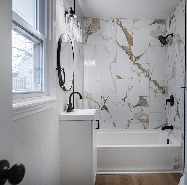This beautifully remodeled home is truly move-in ready, featuring a brand-new electrical panel, furnace, AC, water heater, windows, flooring, interior trim and doors, exterior doors, and fresh paint inside and out. Enjoy a stunning new kitchen with quartz countertops, new cabinets, and appliances, along with updated bathroom vanities, showers, and lighting throughout. Flooded with natural light, the home offers a welcoming living room with a cozy fireplace and a partially finished walkout basement that's ready for your personal touches. Outside, a fenced backyard provides privacy and space to relax. All of this is in a prime location close to shopping, entertainment, highway access, and more! Agent/Owner