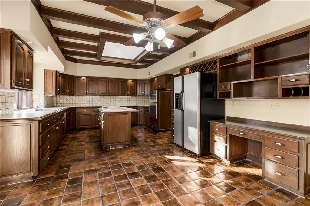 This impeccably crafted single-owner custom home, built and lived in by a master home builder for over 45 years, offers a level of construction quality and architectural detail that is simply not attainable in today’s new builds without spending a fortune. Set at the quiet back of a cul-de-sac in Longwood Forest, a secluded enclave known for its one-of-a-kind homes, this property features timeless craftsmanship, oversized spaces, and endless potential for expansion. Inside, you’ll find massive ceiling heights in the great room, extra-thick crown molding, and ADA-compliant walkways. First-floor living is at its finest here, with a spacious primary suite plus a main-level guest suite—perfect for multigenerational living or long-term guests. The home was designed with future growth in mind. The lower level offers both garage entry and central house entry, making it ideal for finishing into a spectacular additional living area—bringing the home to 6,000+ square feet of livable space if desired. Two large walk-in attic spaces upstairs provide the opportunity to add an additional bedroom, a laundry suite, or a mudroom. Beautiful Pittsburg, KS brick walkways and patios, stone accents, and a secluded brick courtyard have been lovingly enjoyed for decades. The circle drive, brick fence, stone-and-brick exterior, oversized front sconces, and meticulous design choices create classic curb appeal that stands the test of time. The home offers outstanding proximity to Town Center Plaza, highway access, and the new Hallbrook North development—all while maintaining low HOA dues. This is the perfect “forever home” for a buyer seeking exceptional bones, main-level living, and unmatched construction quality—or an incredible canvas for someone dreaming of expanding into a truly remarkable masterpiece with minimal maintenance. Homes of this caliber, character, and structural integrity simply do not come to market often. Chandelier in main entry is not included.