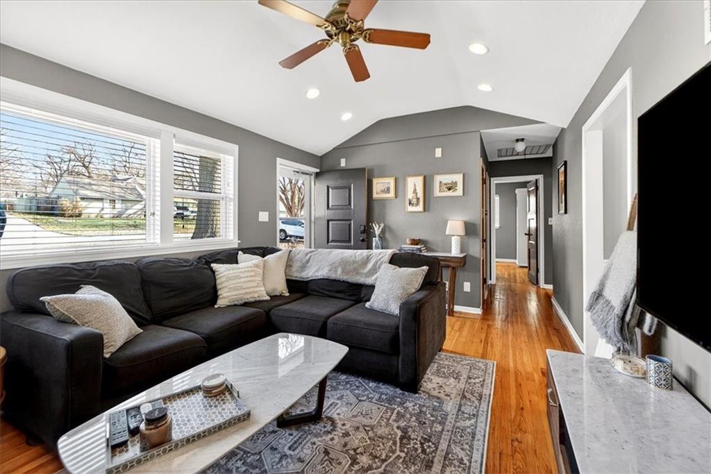 Charming, light-filled, and ideally located, this updated Prairie Village ranch offers effortless living in one of the area’s most beloved neighborhoods. Warm hardwood floors flow throughout the main living spaces, leading to a welcoming living room anchored by a working fireplace—perfect for cozy evenings and adding an inviting focal point to the home. Large, updated windows bathe each room in natural light, elevating the sense of openness, while the easy, functional layout enhances everyday living. A bonus laundry/storage room provides exceptional convenience rarely found in homes of this size. Thoughtful upgrades add lasting value— a 10-year roof, a 9-year HVAC system, and a partial sewer line replacement. Outside, a flat backyard and tree-lined street create an ideal setting for relaxing, gardening, or enjoying Prairie Village’s walkable lifestyle—just moments from parks, shops, and dining. Move-in ready, thoughtfully maintained, and filled with charm, this classic ranch is a standout opportunity in an unbeatable location.