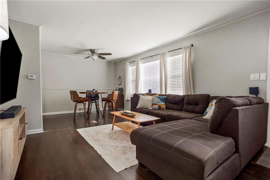 Incredibly maintained ranch in sought after Prairie Village. This home offers crisp curb appeal steps from shopping, parks and more. As you enter you are presented with gorgeous premium laminate floors and a spacious living room, offering plenty of space for a dining area. The neutral walls, sunlit windows and lovely neutral floors are the perfect combination. Just off the living room is the remodeled kitchen offering gorgeous white cabinets, granite counters, tile floors, and stainless-steel appliances including a 5-burner gas stove, and refrigerator that stays. Do not miss the built-in spice cabinet. The bedrooms are tucked on the other side of the home offering plush carpet, nice closets and 2-inch blinds as well as some window coverings. The bathroom has been remodeled and offers a newer toilet and neutral decor. This home offers wonderful space. The laundry was relocated to the oversized garage during the kitchen expansion and offers designated space. Do not miss the newer smart garage door, maintenance free siding, all newer windows, fenced yard, maintained HVAC, and sewer line in 2006. This house is a must see!