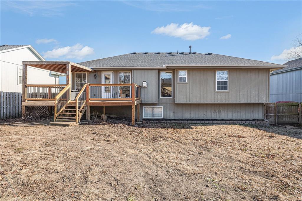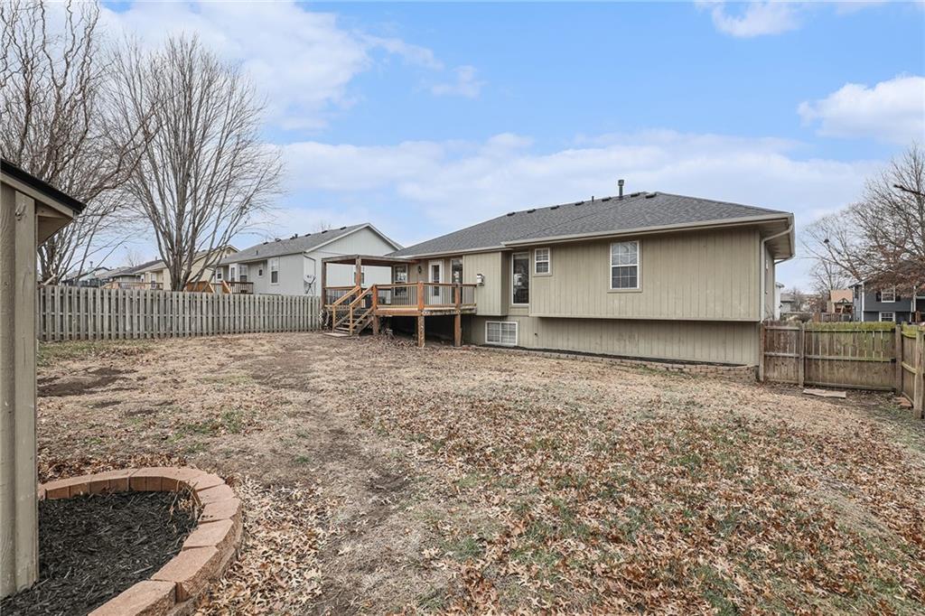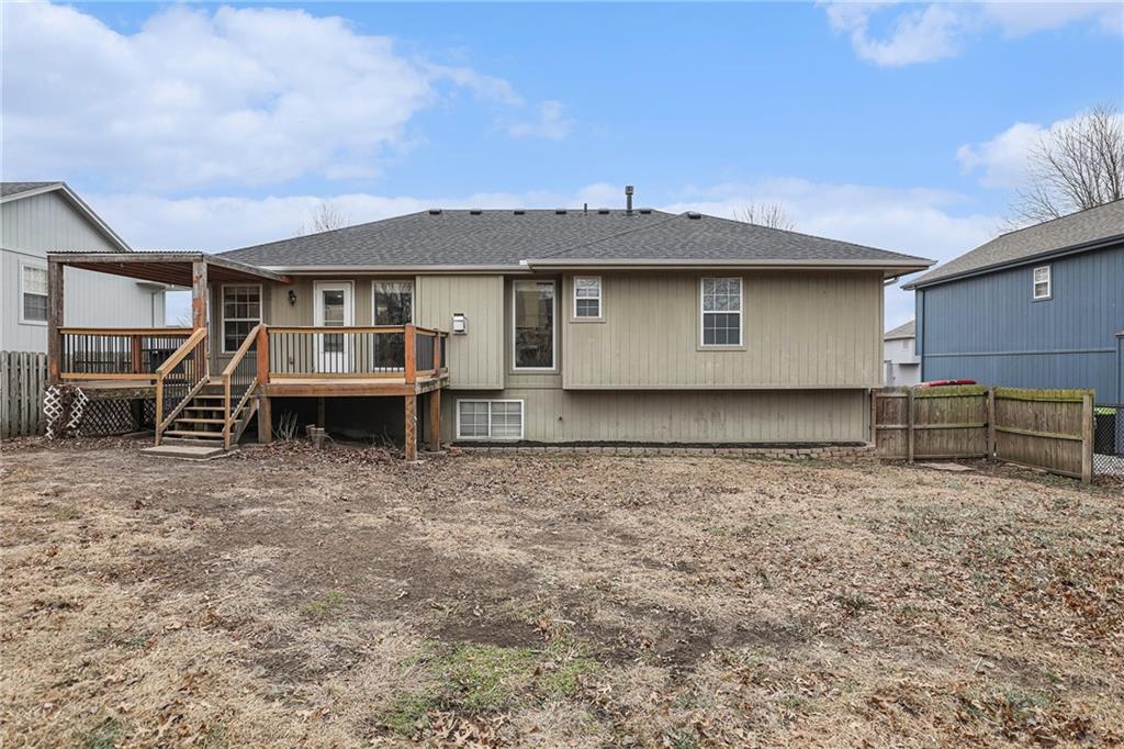 Welcome to this 3 bedroom, 3 bath raised ranch home offering comfortable living and versatile spaces throughout. Most of the interior has been freshly painted to include kitchen cabinets, and the main level features vaulted ceilings, great natural light, and a cozy living room with fireplace. The kitchen provides ample cabinet and counter space and opens nicely to the dining area for easy everyday living. The lower level offers a spacious family/rec room with a wet bar, perfect for entertaining, along with a full bath for added flexibility. Bedrooms are generously sized, including a primary suite with private bath. Enjoy outdoor living on the deck overlooking the fenced backyard, complete with a storage shed for added convenience.