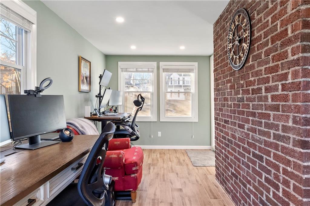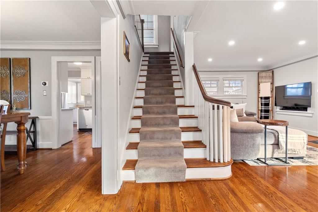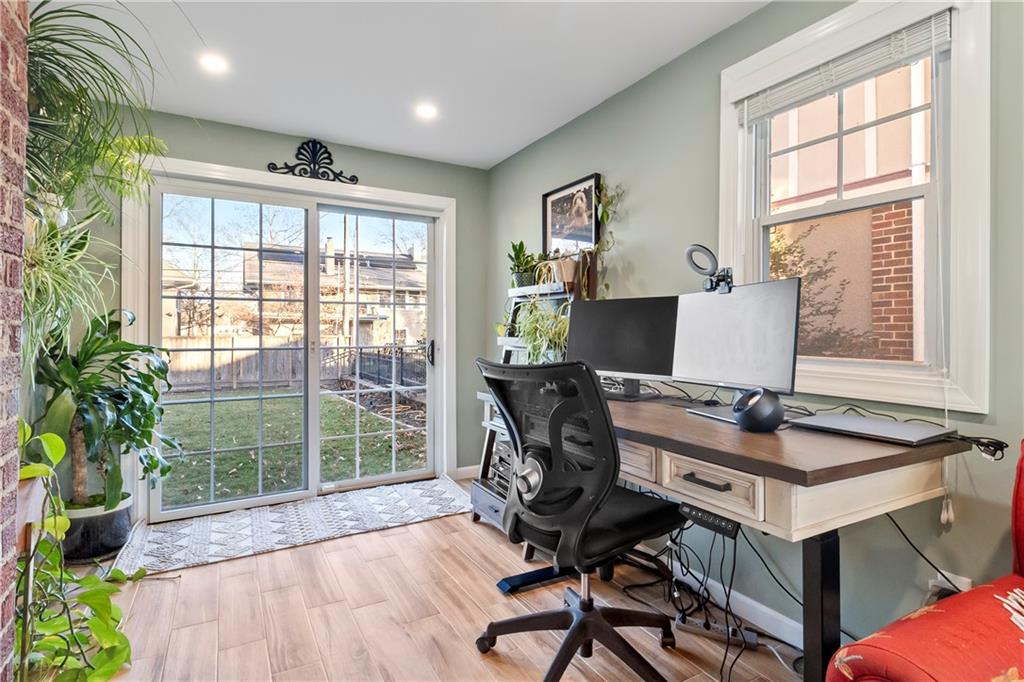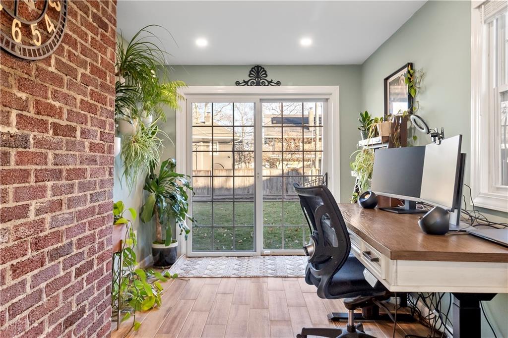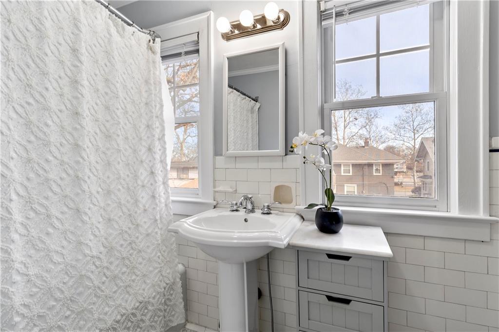 Welcome to 6415 Washington Street, a charming Colonial residence nestled in the heart of the historic Greenway Fields neighborhood, just a block away from the enchanting Downtown Brookside. This elegant home, built in 1921, beckons with its classic design and modern enhancements, offering a harmonious blend of sophistication and comfort. As you step inside, gleaming hardwood floors guide you through a meticulously maintained interior, where thoughtful updates have revitalized every room. The owners have lovingly updated this historic beauty. New paint in every room, adding in modern finishes and lighting, and refinishing and staining the original wood doors to keep that historic charm intact. The main floor unfolds into a gracious center layout featuring a cozy living area complete with a renovated fireplace, surrounded by the warm ambiance of recessed lighting. Adjacent, a versatile office or den offers a tranquil workspace, enhanced by heated floors, new insulation, and a new Pella sliding door leading to an outdoor oasis. The heart of the home, the kitchen, dazzles with new quartzite countertops, a fresh backsplash, and a suite of updated fixtures, ensuring a delightful culinary experience. Upstairs, the spacious and oversized primary suite, offers a potential conversion back to two separate bedrooms making this a three bedroom home. Adding to its allure, this home boasts a rare private driveway and attached garage. Additionally, a recent backyard transformation, presenting a new Trex deck complemented by outdoor lighting perfect for entertaining. This Colonial gem invites you to simply move in and infuse it with your personal touch. Make this beautiful abode your own private sanctuary, where timeless elegance meets modern convenience.