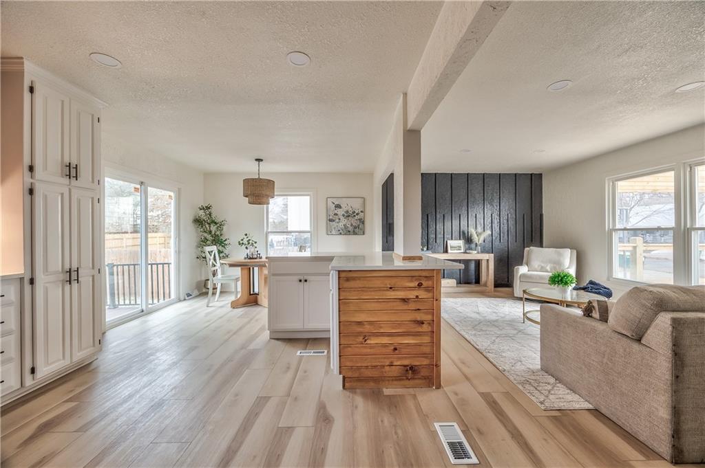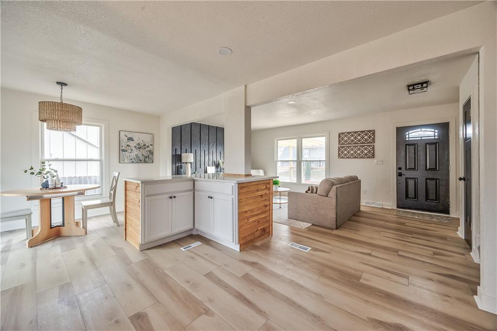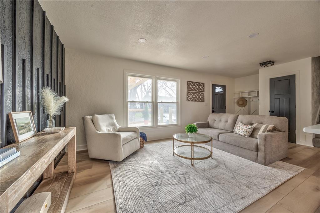 Beautifully renovated home with modern upgrades throughout. This fully updated home features fresh Alabaster interior paint with stylish black and natural wood accents. Enjoy an oversized front deck with pergola, perfect for morning coffee or relaxing outdoors. Inside, the home offers all new luxury vinyl plank flooring and plush carpet in two guest bedrooms. The kitchen has been completely refreshed with new stainless steel appliances, sanded and painted cabinets with updated hardware, a new kitchen island, and white granite countertops. Both bathrooms have been fully remodeled with new tile, vanities, and lighting. A custom mudroom with built-in bench welcomes you at the entrance. All bedrooms feature matching black ceiling fans, and the living room includes a striking Iron Ore accent wall. Outdoor living continues on the composite back deck with metal railing, providing durability and low maintenance. Brand new roof electrical box too! Move-in ready—come see this beautifully finished home today!