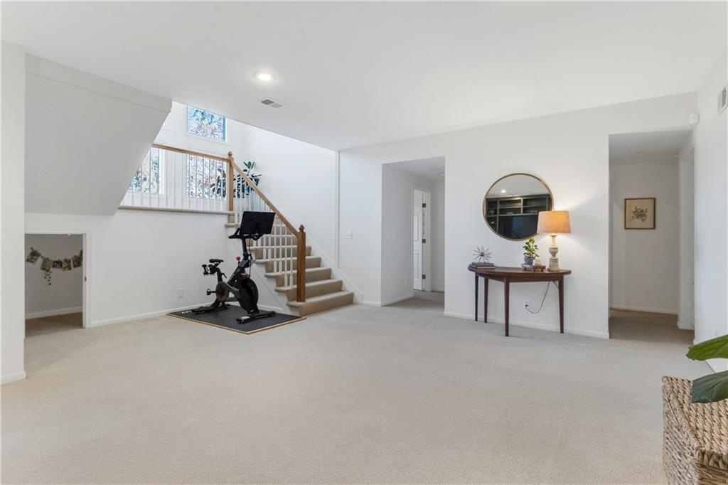Discover this meticulously maintained and charming 4-bedroom, 3.5-bath reverse 1.5-story home, nestled on a premium wooded walk-out lot that backs to serene nature and abundant wildlife. Freshly painted exterior and interiors highlight the inviting open floor plan, where formal and casual living spaces flow seamlessly. The main level features elegant living and dining room, a bright kitchen with breakfast area, convenient laundry, two bedrooms, and 2.5 baths—perfect for everyday living and entertaining. Descend to the spacious lower level walk-out, offering two additional bedrooms, a full bath, cozy family room, and versatile bonus room - ideal for a home office, gym, media room, or guest suite. A stunning wall of windows floods the home with natural light, framing peaceful wooded views enjoyed from the patio or Trex deck. Enjoy this exceptional property which combines a prime location with privacy, modern comfort, and outdoor tranquility—your ideal retreat awaits!