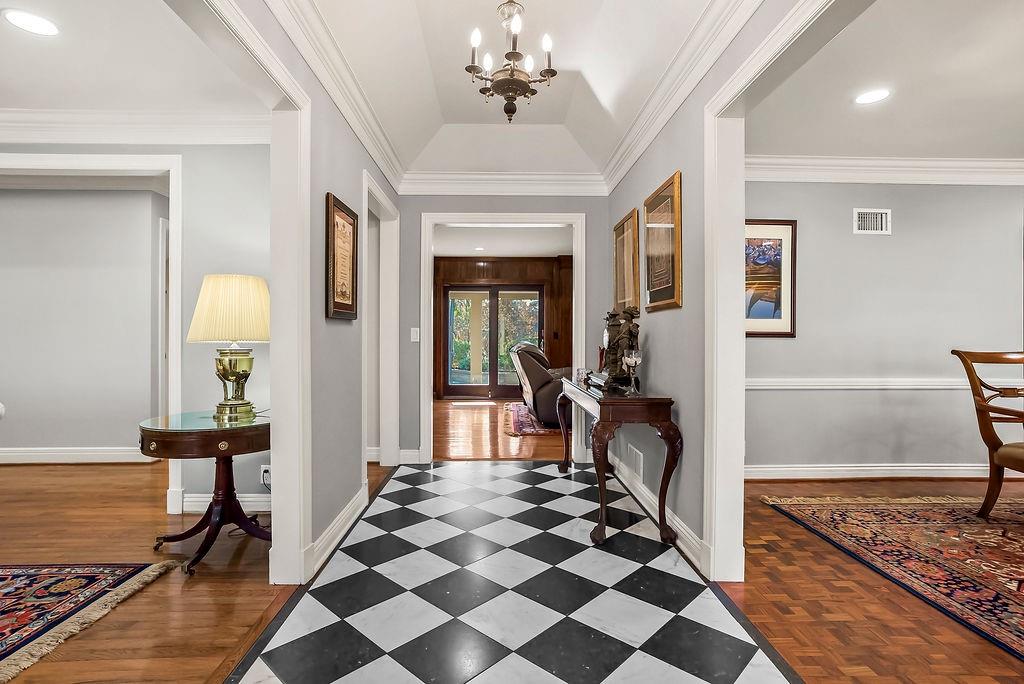 Welcome to the timeless character of an established residence with the comfort & convenience of extensive updates. The stunning curb appeal draws you in, featuring a new Ludowici tile roof, stucco, windows, mahogany front door & shutters, and a brick circle driveway to a side-entry garage—all on a flat, nearly half-acre lot with crisp landscaping. Step inside & feel the quality of your new home. New finishes seamlessly complement original charm. Wood floors flow throughout, creating a warm & inviting layout that includes formal living & dining rooms. A striking hearth-room features rich solid walnut paneling, gorgeous fireplace, crown molding & cabinetry, & adjacent powder room. The hearth room opens to the updated kitchen with solid walnut cabinetry, granite tops & S/S appliances. A 1st floor laundry adds convenience. The spacious primary bedroom suite offers serenity with a sitting room & 2nd fireplace, & a luxurious ensuite bathroom featuring Carrera marble floors & walls, heated floor, double-sink custom vanity, & stunning walk-in shower with double rainfall & wand shower heads. An oversized custom closet completes the suite. Also on the main level is a 2nd bedroom with adjacent fully updated bathroom. Upstairs is truly a dream, showcasing raised ceilings & an expanded 2nd story. An amazing 2nd floor suite offers a walk-in closet & stunning new bath with an oversized walk-in shower with dual shower heads, neutral tile, & beautiful finishes. Bedrooms 4 & 5 are equally impressive: walk-in closets, private en-suite or adjacent remodeled bathrooms, custom glass shower doors and mirrors, & more. The lower level provides expansive space with a partial finish, ready for your personal touches. The backyard offers a peaceful retreat featuring a covered area, sprawling patio, outdoor sink, vented cooking area & generous green space—all fully fenced. So many recent updates, including zoned HVAC, insulation & countless thoughtful improvements. This is truly move in ready