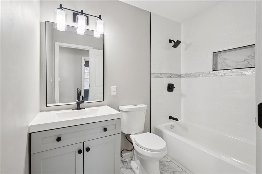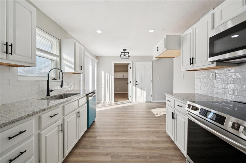 Clean and move-in ready! New kitchen cabinets, new granite countertops, new light fixtures, new luxury vinyl plank flooring, bathroom tile and carpet, new interior doors, freshly painted inside and out, new appliances and more. Spacious wood deck off the kitchen/dining area, fenced yard and bonus storage shed. Seller is related to the listing agent.