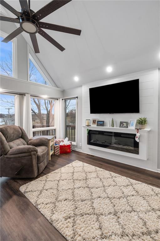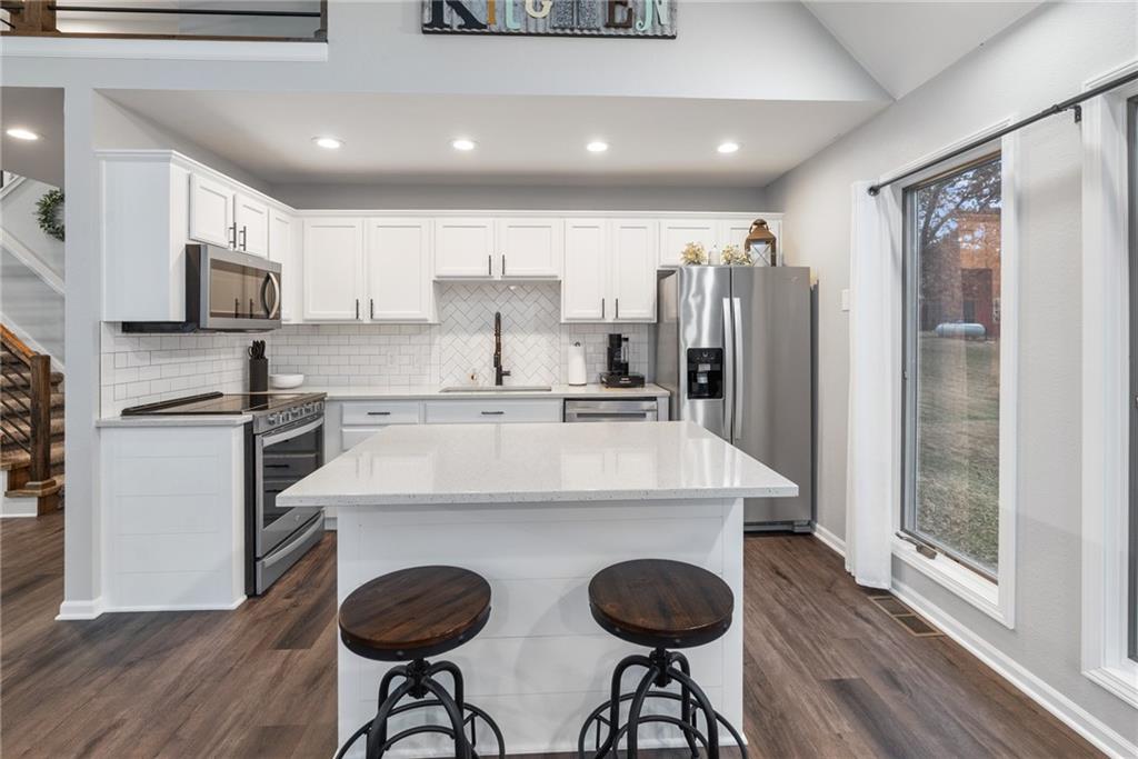 Breathtaking Lake Views! This inviting lake property offers the flexibility of a weekend retreat or a spacious full-time residence. Offering just a little under 1900 sq ft this open-concept design is anchored by a bright, airy great room with soaring ceilings. Step outside to the expansive deck, where relaxing and soaking in the surrounding natural views will quickly become a favorite pastime. The upper level includes a private bedroom, with plenty of attic storage, and full bath, creating a peaceful guest suite or quiet retreat, with beautiful views of the lake with the A-Frame style windows allowing beautiful natural light and majestic sunsets! The primary bedroom with walk-in closet and laundry is situated on the same floor as your main kitchen giving you everything you need, cozy up next to the electric fireplace and take in those views!! The lower level provides a comfortable second living area complete with an electric fireplace, bathroom, and a great spot for a home office, or it can be used as a nonconforming bedroom. With three bathrooms total, there’s plenty of room to host family and friends and truly enjoy lake life together. The basement level adds a unique touch with a second kitchenette featuring a sink and refrigerator, just add your favorite countertop appliances and you’ve got a functional secondary kitchen. Open the garage door and enjoy seamless indoor-outdoor entertaining with beautiful lake views and a true lakeside atmosphere. A detached 24’ x 30’ heated garage with three 9’ doors offers endless possibilities, from storing boats, vehicles, and lake toys to creating an additional entertaining space, or awesome workshop. Situated on two lots, this property provides extra room to spread out, expand, or simply enjoy more outdoor space. Conveniently located near Community Area #6, you’ll have quick access to excellent water and a nearby dock for easy on-and-off use, everything you need to fully embrace the lake lifestyle.