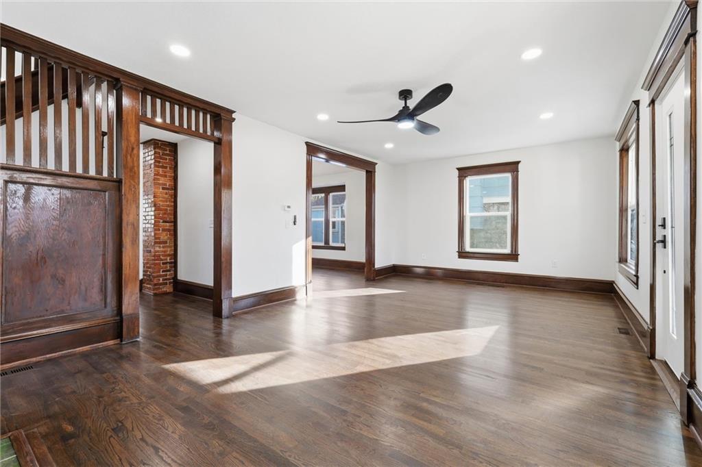 Welcome to this meticulously renovated 3-bedroom, 2.5-bathroom shirtwaist offering over 2,000 square feet across three sun-drenched stories in coveted Longfellow. This stunning home perfectly balances preserved architectural character with modern luxury. Step inside to discover beautifully restored wood trim, baseboards, and window casings creating warmth against fresh white walls and gleaming new hardwood floors throughout. The generous room sizes provide true flexibility for living, working, and entertaining. The showstopper kitchen features crisp off-white shaker cabinets, stunning backsplash, quartz countertops, and stainless appliances. The designer bathrooms rival luxury hotels with floating vanities, LED-lit mirrors, spa-worthy walk-in showers with contemporary tile, and sophisticated black matte fixtures. Pops of color through hexagon floor tiles add personality throughout. The expansive third-floor bonus space with vaulted ceilings offers endless possibilities as a primary suite, office, or media room. Every major system is brand new including dual-zone HVAC (first and second floors on one system, third floor independently controlled), energy-efficient windows, and a new roof. Located in one of KC's most walkable neighborhoods, you're steps from Longfellow's restaurants, coffee shops, and local businesses. Rare three-car parking includes a two-car garage plus covered carport accessed from the rear. The nice-sized yard and covered front porch complete this exceptional package. This isn't just another flip—it's a thoughtful restoration honoring classic bones while delivering every modern convenience. Move-in ready and waiting for you.