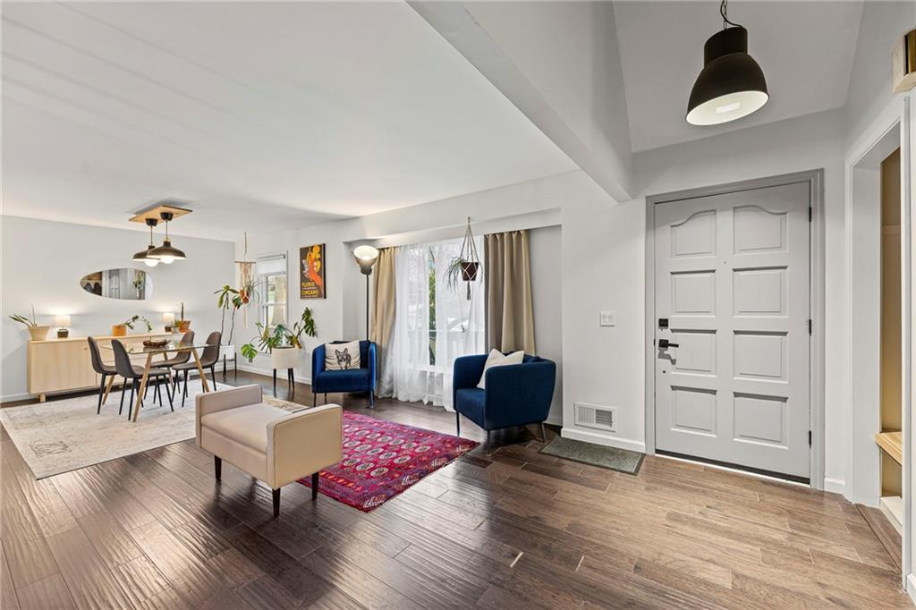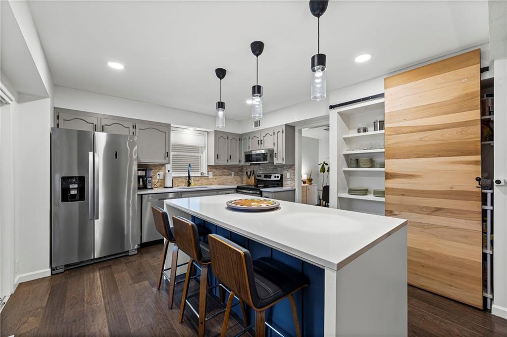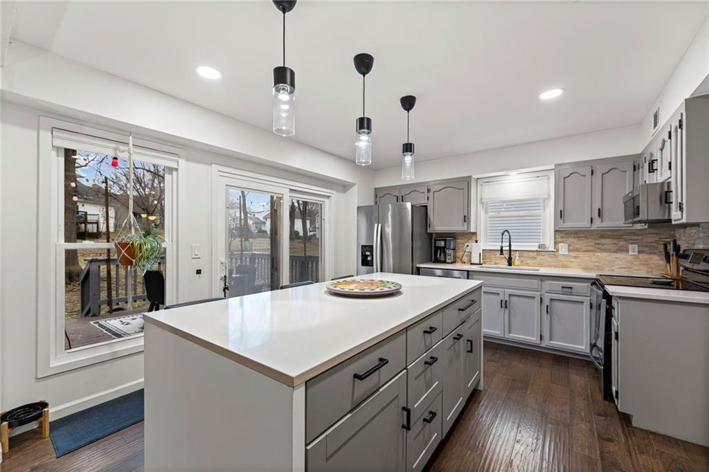 Great side to side split with updated kitchen and bathrooms, with open concept/yet separation and spacious feel. Kitchen has large center island with plenty of storage including pantry. Great space for entertaining all main level areas that flow smoothly from kitchen front room through open kitchen. WHAT SETS THIS HOUSE APART from many side to sides is the entry to the basement is inside the house with a fully usable two car garage. ALSO, laundry room is between main level and basement. Great location and great house with large fenced back yard!