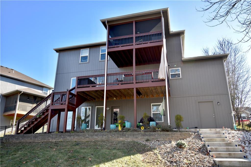 Welcome home to this true 5 bedroom home! Only 5 years old, this home has been well loved, finished walkout basement, tasteful easy care landscaping - including front & back yard sprinkler system, no detail missed in your private retreat! Main floor offers open concept for great flow & plenty of room for everyone. Owners Suite offers spa like bath, step out onto private screened in deck. This home backs to trees, winter view of Smithville Lake.