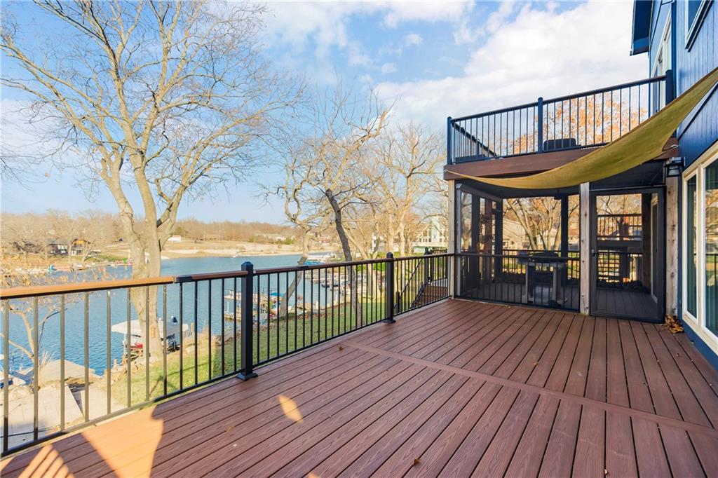 Experience lakefront living at its finest in the beautifully updated home located in a highly desirable family community served by Blue Springs A+ Schools. This property offers breathtaking lake views, abundant natural light, and thoughtful upgrades throughout the home including the most big ticket items updated. The main level features soaring ceilings, plenty of windows, and a spacious kitchen designed for both function and style. Highlights include a large walkin pantry which most homes in this area do not have, extensive cabinetry, and a central island overlooking the dining area and the lake-perfect for everyday living and entertaining. Laundry rooms are conveniently located on main level and bedroom level. The luxurious master suite spans the entire lakeside of the second floor, showcasing spectacular water views. The private retreat includes a sitting area, fireplace, a large walk-in closet, an updated en-suite bathroom, and it's own private deck. Each additional bedroom includes direct access to a bathroom, offering comfort and privacy for everyone The recently remodeled basement level adds valuable living space, while outdoor living truly shines with a covered patio, multiple decks, a new Trex deck, & added patio space with fenced in backyard. Enjoy direct lake access with a private dock, ideal for swimming, fishing, and relaxing while taking in stunning sunrises and sunsets. Sellers have also a nice pontoon boat that's been approved and ready to use on the lake for sale that can be purchased. Additional updates include a newer HVAC system and hot water tank just a few years old. This home features 4 bedrooms, 4.5 bathrooms and an unbeatable lakefront lifestyle. Also offering rare extra parking that most lake homes in this area don't have. Tax record shows this home being built in 1936 but that’s only a small spot of the basement that is original because the rest of the house was built from the ground up in 2006. Hurry quicky.
