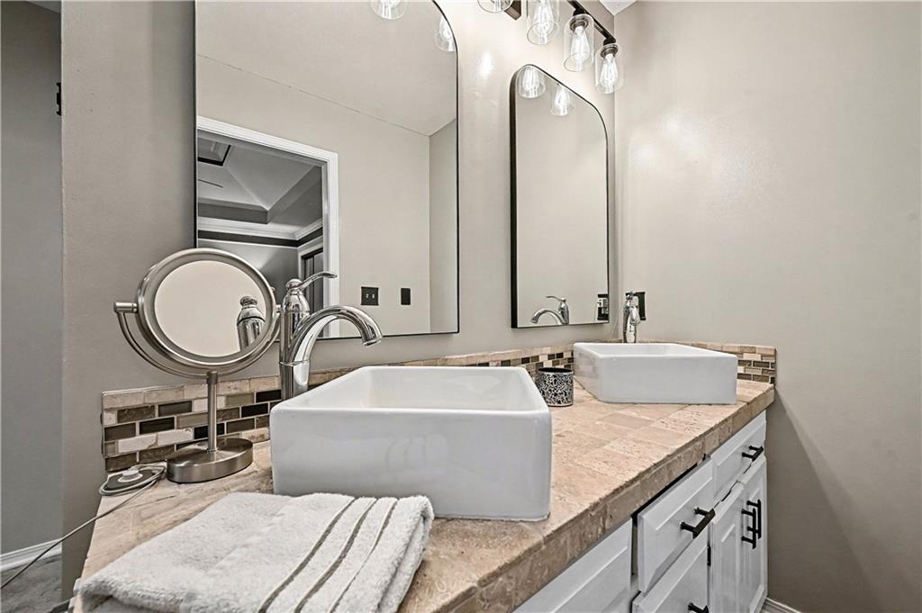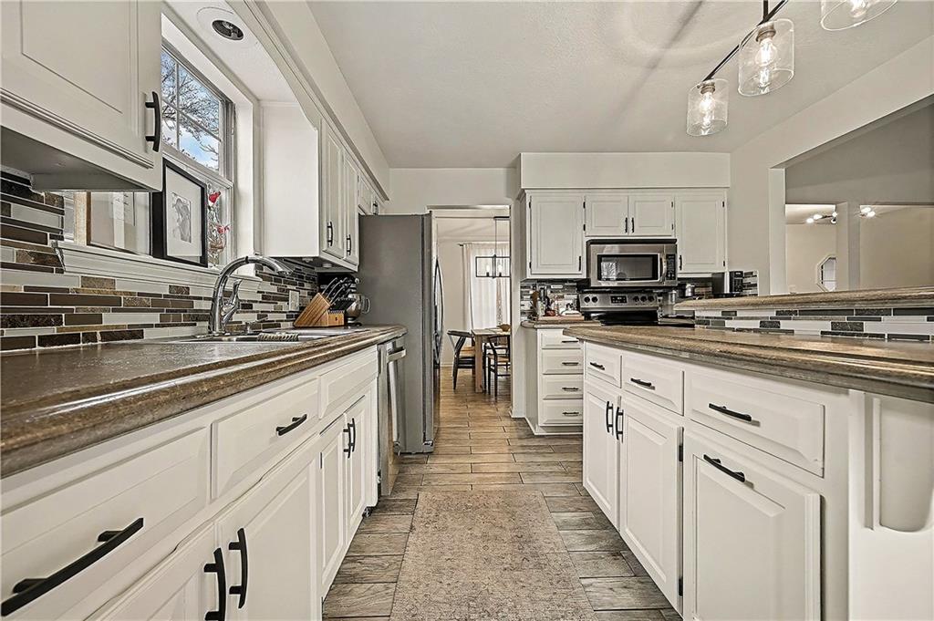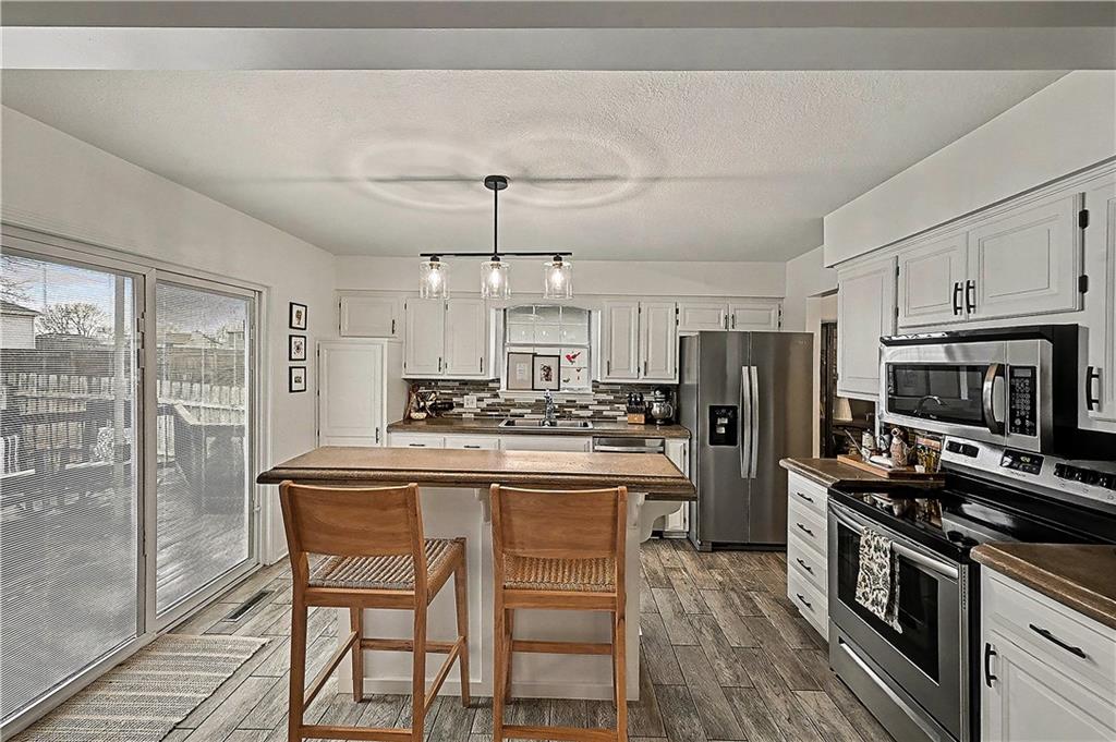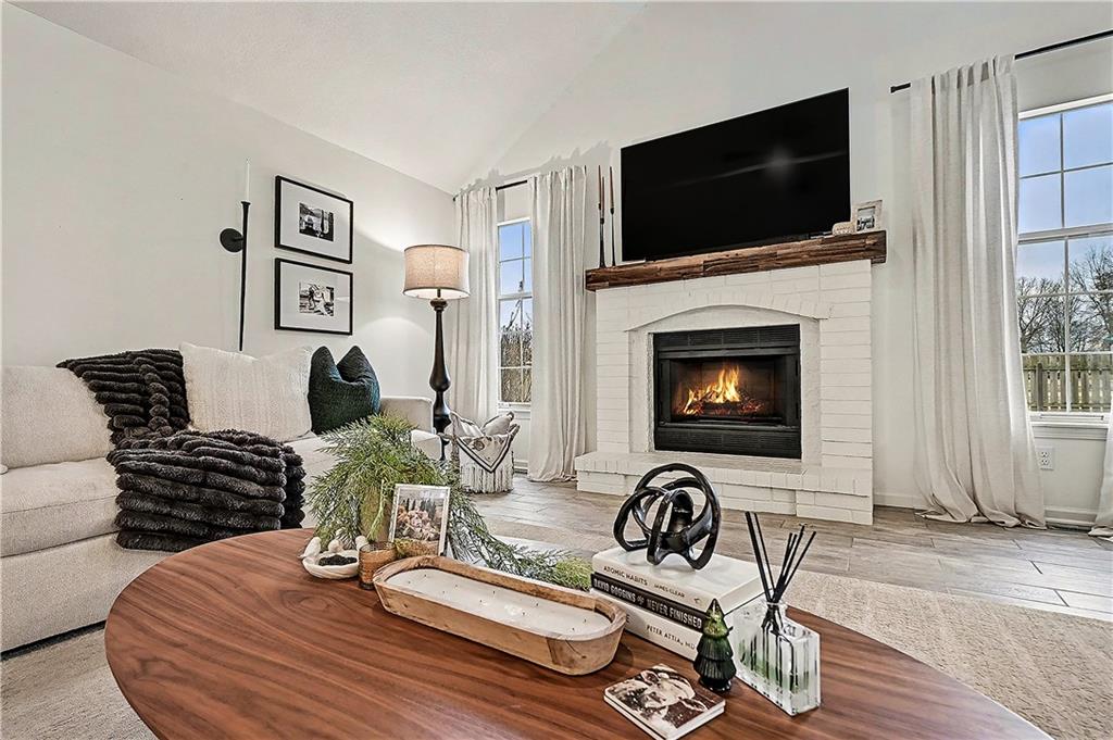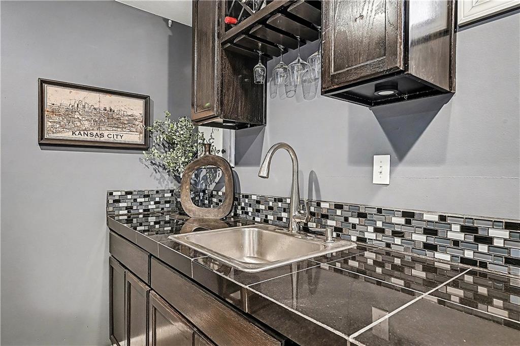 - Fresh. Stylish. Move-in Ready. This 3-bedroom, 2½-bath home delivers the clean, crisp finishes today’s buyers love. Thoughtfully maintained and filled with natural light, the open main living area features vaulted ceiling, durable tile flooring, and a striking gas fireplace that flows seamlessly into the updated kitchen. You’ll love the stainless steel appliances, concrete countertops, and generous breakfast bar/island—perfect for everyday living or hosting friends. Step outside from the kitchen to a deck and patio overlooking a large, level, fully fenced backyard—ideal for grilling, entertaining, or letting pets roam freely. The primary suite offers two closets and a beautifully updated en-suite bath with a tiled walk-in shower with bench & double vanity with vessel sinks. Two additional bedrooms, an updated full bath, and convenient laundry complete the 2nd level. The finished lower level adds even more flexible living space with a large rec room—perfect for a home office, playroom, gym, or game-day hangout—plus a stylish wet bar with tile countertops, beverage fridge, and a half bath. A spacious two-car garage with built-in shelving adds great storage, and major updates include a newer roof, garage doors, interior paint, light fixtures, primary bath mirrors, & fireplace mantel. Located close to shopping, dining, and award-winning Blue Springs schools, including Blue Springs High School, with Lucy Franklin Elementary and Brittany Hills Middle School just a short walk away. A fresh, crisp, charming home in a prime location—this one checks all the boxes.