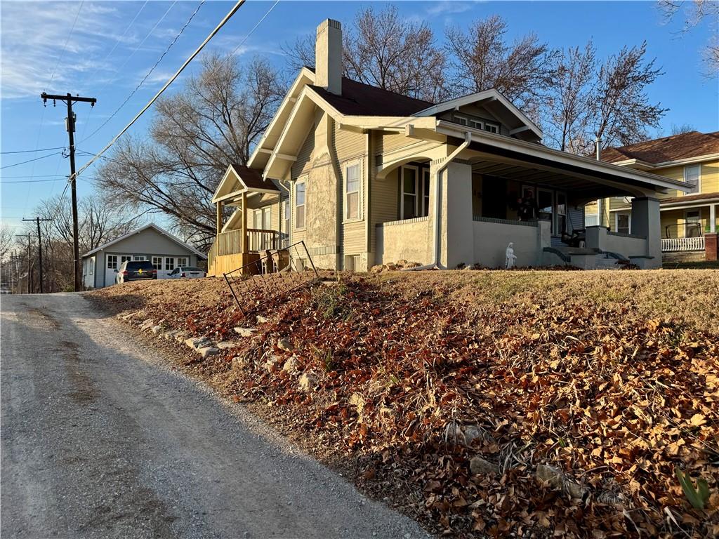 This is the kind of home that immediately feels welcoming, the kind that invites you to slow down and imagine everyday life unfolding comfortably within its walls. Built in 1922, this beautifully maintained residence blends timeless craftsmanship with thoughtful updates that make modern living easy. The front porch sets the tone, offering a perfect place for morning coffee or evening conversation. Inside, natural light fills the main living spaces, highlighting original details and warm finishes that give the home its character. The living room centers around a fireplace that anchors the space, creating a cozy gathering spot for family and friends. The kitchen is spacious and functional, offering generous counter space, classic cabinetry, and room to truly cook and connect. Adjacent dining and gathering areas flow naturally, making everyday living and entertaining feel effortless. With three bedrooms, including a main-floor primary, the layout offers flexibility for families, guests, or home office needs. The partial finished basement adds valuable bonus space, ideal for a family room, game room, or quiet retreat, along with an additional office or non-conforming bedroom option. Outdoor living is just as inviting, with a covered porch and side deck creating multiple spaces to relax or entertain. A detached two-car garage adds convenience while preserving the home’s charm. Located just minutes from Benedictine College and downtown Atchison, this home offers character, comfort, and walkable access to local dining, shopping, and campus life. It’s a home best appreciated in person, where its warmth and livability truly come to life.