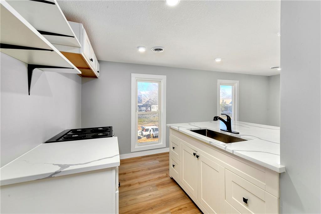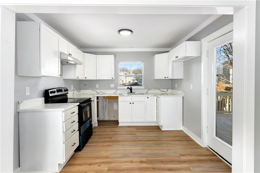 Newly renovated 2-story Duplex, featuring 2-bedoom and 1-bath units, in the rejuvenated Downtown Olathe area! A short stroll from new restaurants, parks and green spaces, new JoCo library, quaint downtown shops; nearby Olathe Medical Center, KS School for the Deaf, Mid-American Nazarene University, Johnson County Courthouse and government buildings; centrally located with quick access to highways for commuting! Perfect for STR, mid-term rentals, and establishing long-term tenant opportunities. Amplify your 2026 World Cup AirBnB portfolio! Maximize your investment with professional business travelers! Many possibilities with these 2 units. First floor unit features a covered porch, deck with fenced yard, tall ceiling, ramp entrance, large windows; Second floor unit features compact, modern kitchen and large bedrooms. Laundry area in building, with separate exterior entrance. New roof, new flooring, new countertops, new bathrooms, new wall and ceiling drywall, interior and exterior paint, new SS appliances!