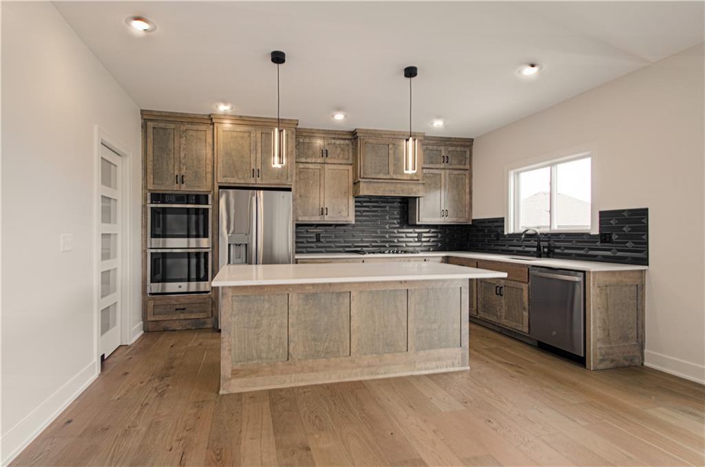 This brand-new, beautifully crafted Reverse 1.5 Story home offers a total of 5 bedrooms and 3 Full baths! This Stunning Home boasts Vaulted ceilings in entryway, living room, and dining room,Vaulted 13' ceilings in master bedroom and office/bedroom #2 A Custom front entry way nook feature (full glass ceiling to floor with mantle) Featuring A Fireplace Wall in the living room made of Venetian plaster, an Extra large master shower Built-in drawer cabinet in master closet Custom lighting at master bedroom headboard location with separate switching for night time Extra large mud room Extra large two-tiered deck with composite decking and large patio beneath entire deck Stair lighting included Set-up for projector in basement (pre-wire only - no hardware included)Pre-wired for speakers in kitchen and on deck Pre-wired for security cameras on front of house CAT-6 to all tv locations including projector in basement as well as two drops in office for computers The house boasts exceptional finishes and meticulous craftsmanship, showcasing elegant wood floors, and custom cabinetry throughout. The private master suite is a true retreat, exuding luxury and comfort. The gourmet kitchen is a chef's dream, complete with an island, butlers pantry, and top-of-the-line appliances, making it perfect for culinary enthusiasts. The lower level extends the living space and offers 3 additional bedrooms. Whether you're hosting gatherings or enjoying quiet moments, This Stunning Home caters to your every need! Located in The Silverbrooke Subdivision and the ParkHill School District. This home is complete and move-in-ready!