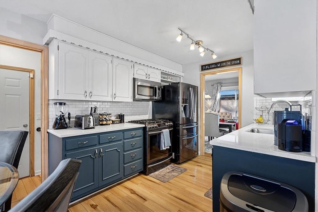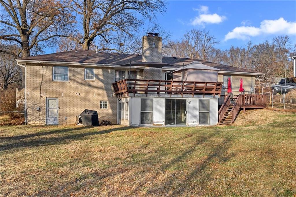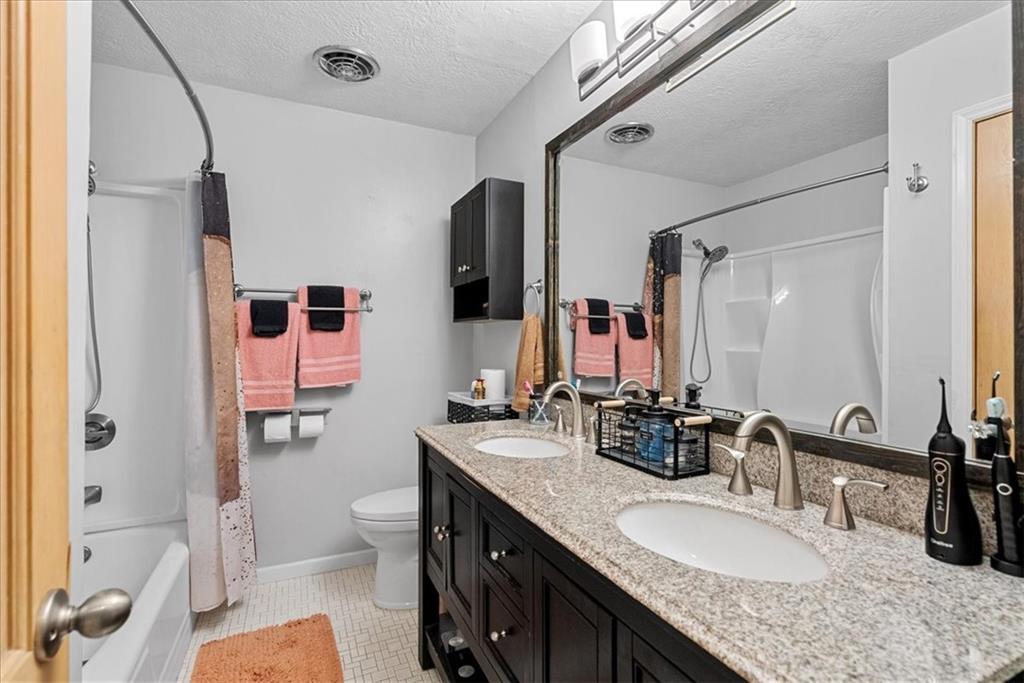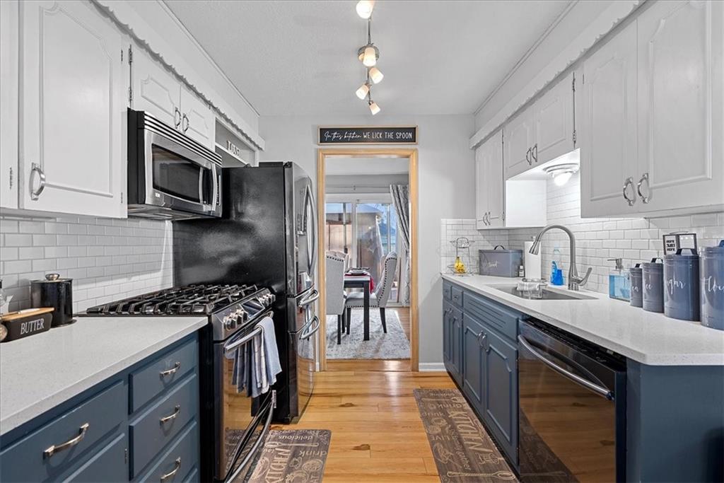This 4-sided brick ranch offers an impressive amount of finished space and versatility, featuring a fully finished basement, multiple living areas, and thoughtful updates throughout. With hardwood floors in the living room and bedrooms and luxury vinyl flooring in the entry and kitchen, the home is both functional and well maintained. The main level includes an eat-in kitchen with granite countertops, painted cabinets, stainless steel appliances, a gas stove, pantry, and a dedicated dining room with sliding doors leading to a large two-tier deck. The fully fenced backyard provides substantial outdoor space, and patio furniture and pergola are negotiable. The finished basement adds significant value with a second family room and fireplace, dry bar, full bathroom, large storage room, and a non-conforming bedroom currently used as a studio with a generous closet. Additional features include an all-seasons sunroom with electrical outlets and ceiling fans, a garage with stairs to the attic, attic fan, large closets throughout, and newer plumbing, water heater, and HVAC. Located on a quiet street!